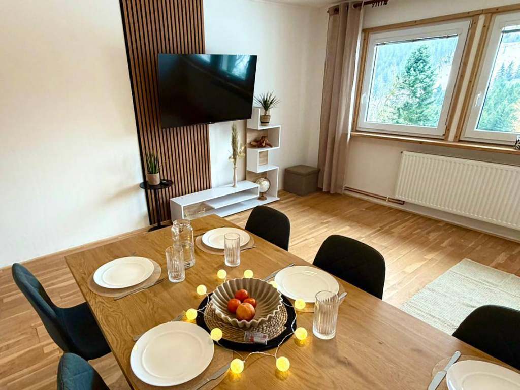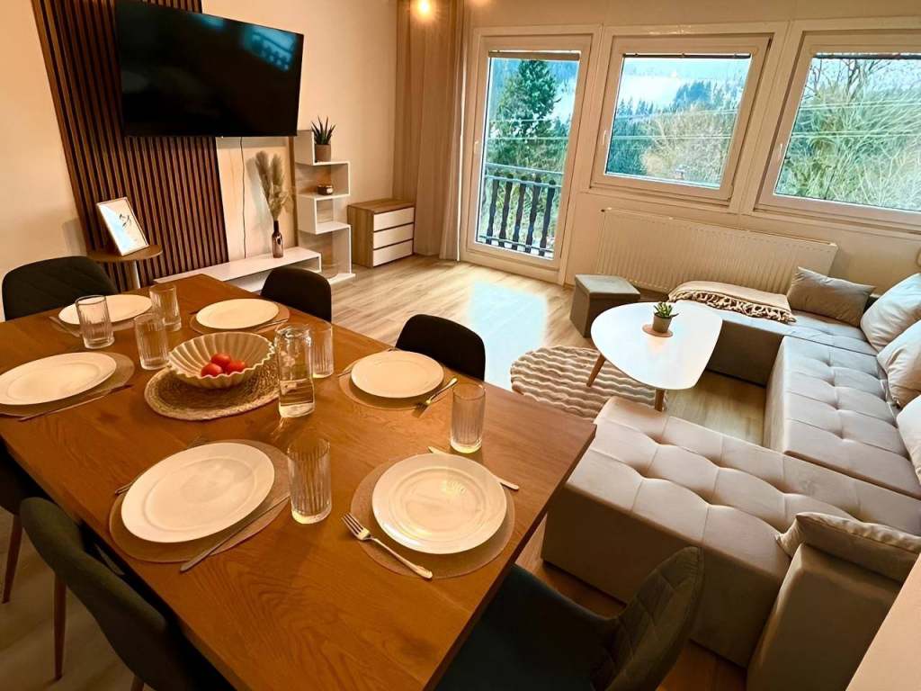 Chytrá televize v obýváku, velký stůl k němu pohodlné židle. Kuchyně plně vybavena také.