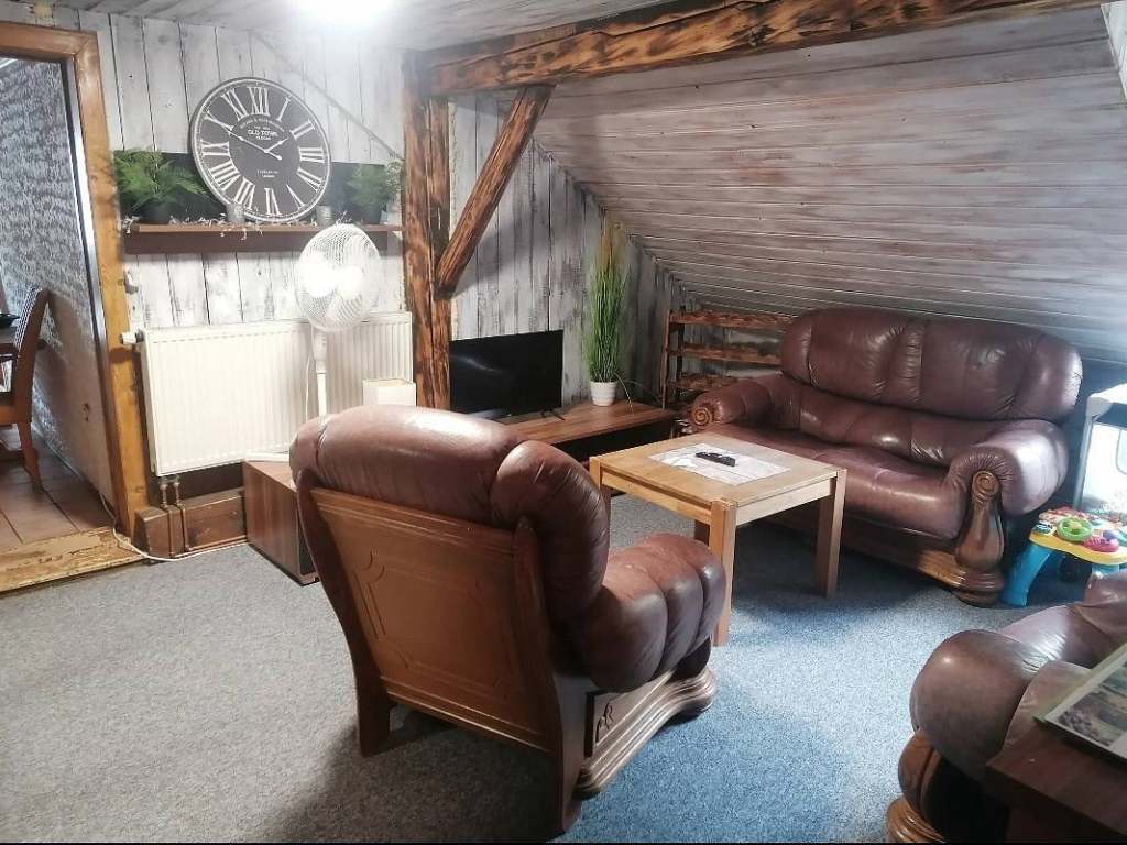 V přízemí se nachází koupelna s WC jen pro hosty. K dispozici zamčený sklep pro kola. Prostorný apartmán je po schodech v podkroví. Velký obývák, smart TV, Wi - Fi, Netflix, kompletně vybavena kuchyně s rozkládacím gaučem. Ložnice s manželskou postelí, jednolůžkem a dětskou postýlkou.