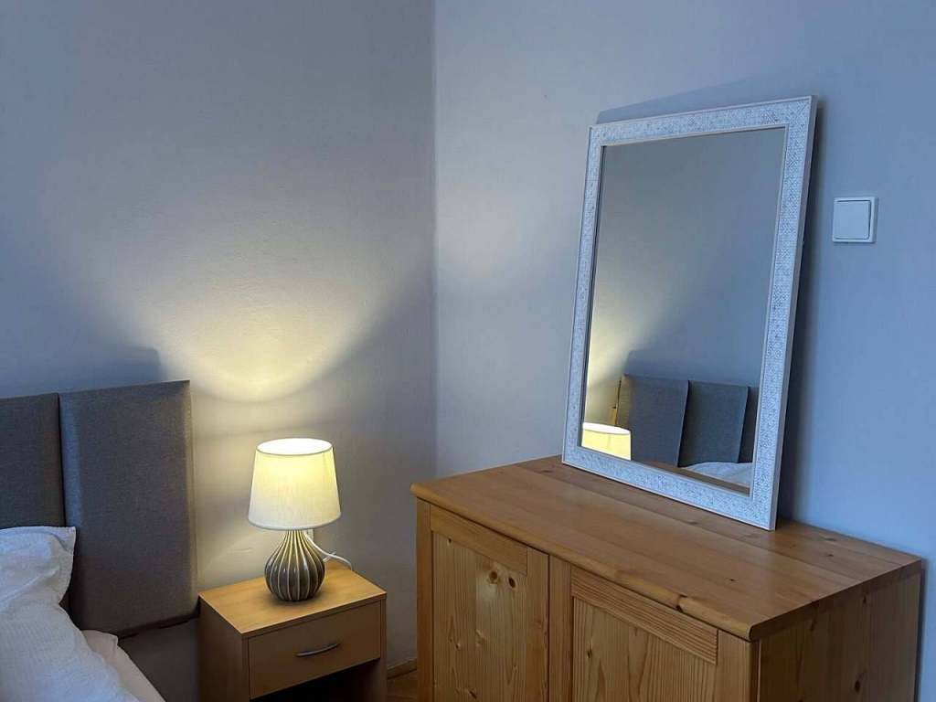 Plně vybavená kuchyň s jídelním koutem, obývací pokoj s rozložitelným gaučem a s dvojlůžkem, 50" TV, WIFI, ložnice s dvojlůžkem. Komody pro uložení osobních věcí v obou pokojích. V předsíni u vstupu je vestavěná věšáková a odkládací šatní stěna.