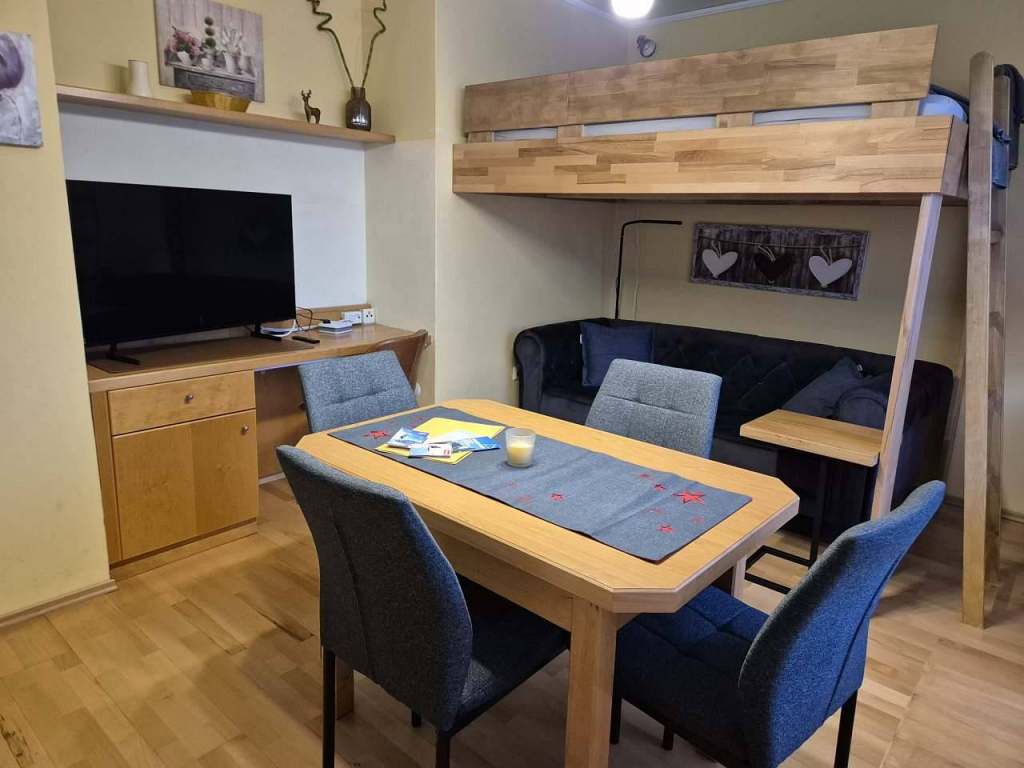 Obývací pokoj s kuchyňským koutem: Spojený prostor s dobře vybavenou kuchyňskou linkou, jídelním stolem pro 4 osoby a pohodlným gaučem. Velká TV s Netflixem zdarma pro večerní relaxaci.