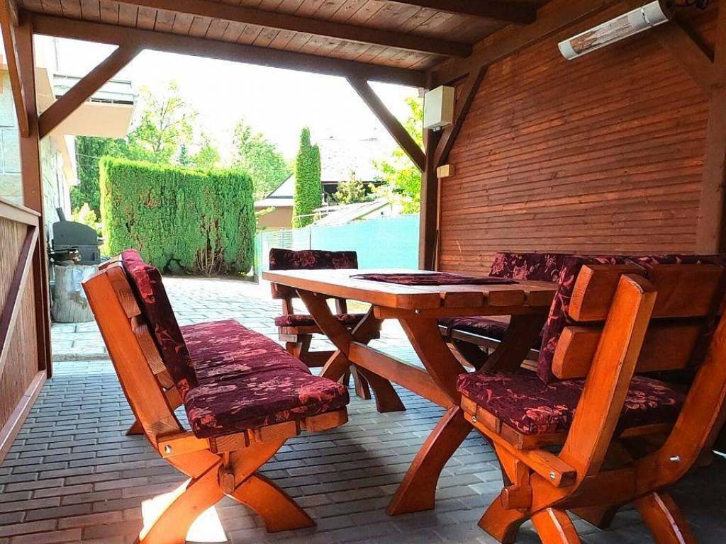 Apartmán se nachází v podkroví RD se zasklenou lodžií a s příslušenstvím k sezení a odpočinku. K dispozici po celou dobu pobytu je zastřešený bazén, velká trampolína, ruské kuželky a další volnočasové využití pro děti i dospělé. Máme vybudované nové privátní wellness - vířivku a infrasaunu.