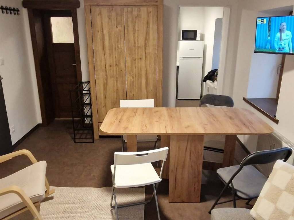 Plně vybavená kuchyňská linka. V zimě přímo u objektu občerstvení v rámci skiareálu, v létě občerstvení 50m daleko. Celosezónně na kopci horská chata Severák s restaurací.