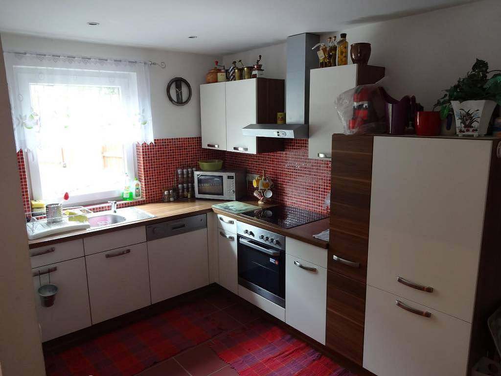 Kuchyň vybavená nádobím, varná konvice, sporák, mikrovlnka, lednice, myčka.