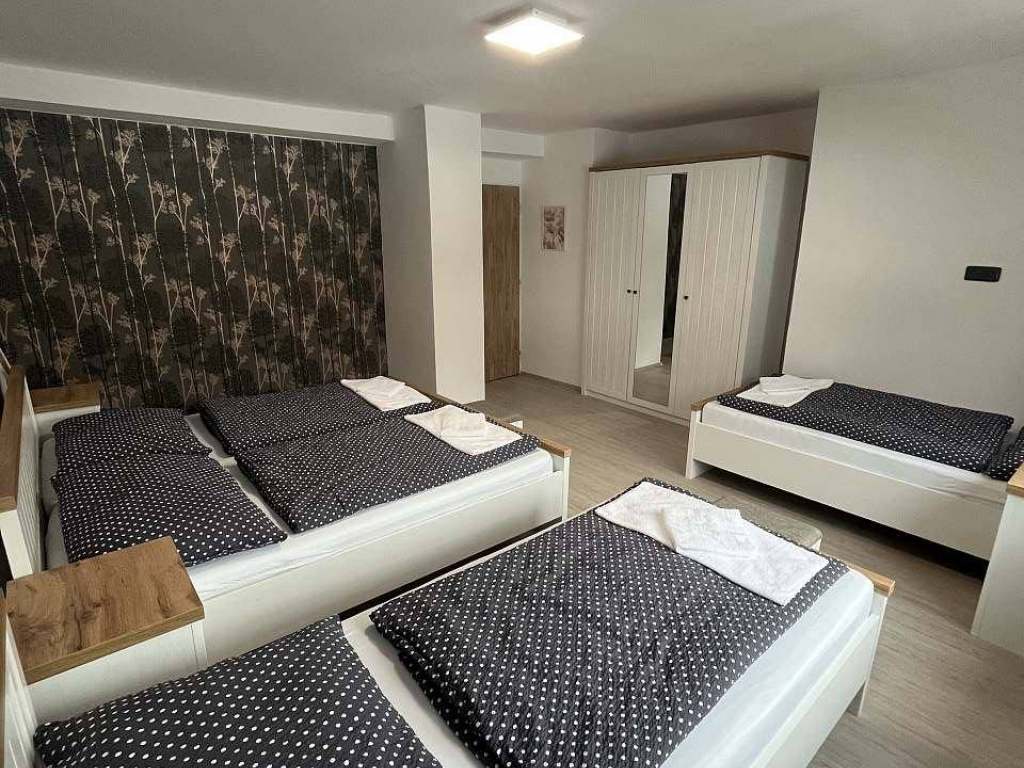 Vybavený nový apartmán, TV, Wi - Fi, stolní fotbálek, varná konvice, kávovar, mikrovlnná trouba, indukční deska a lednice.