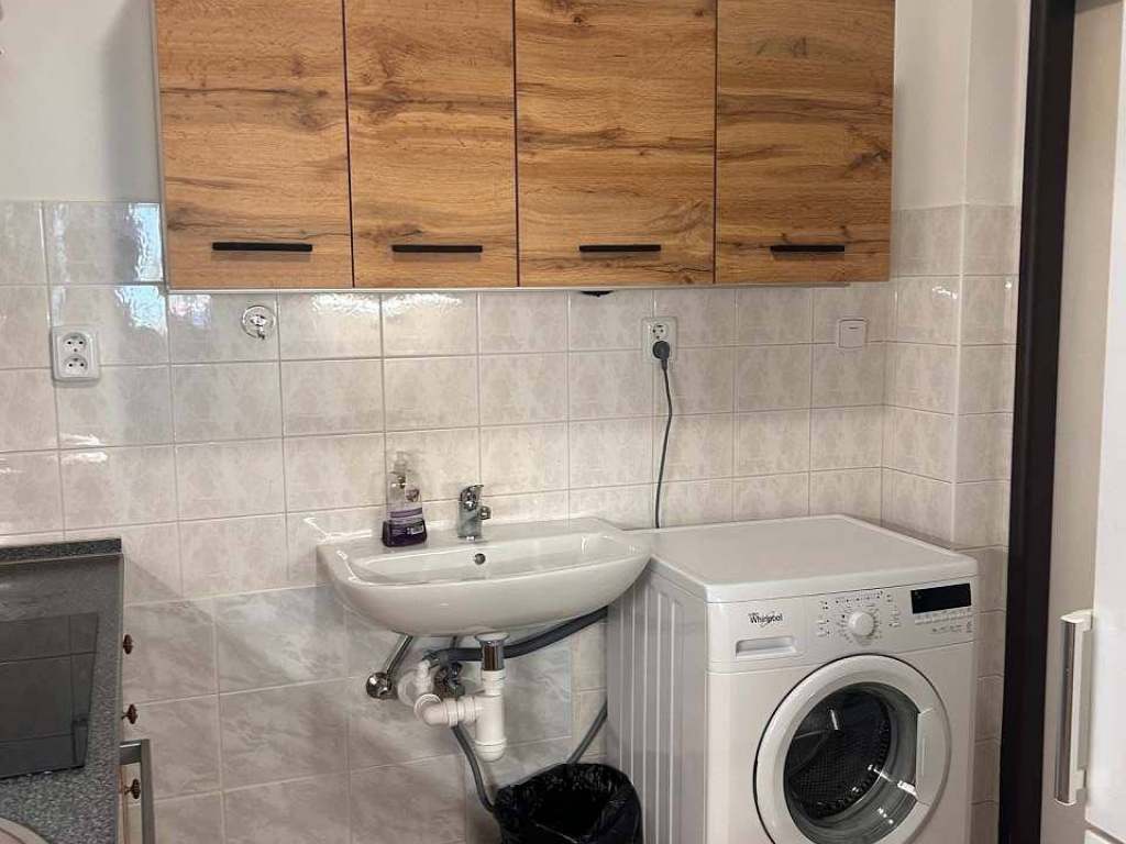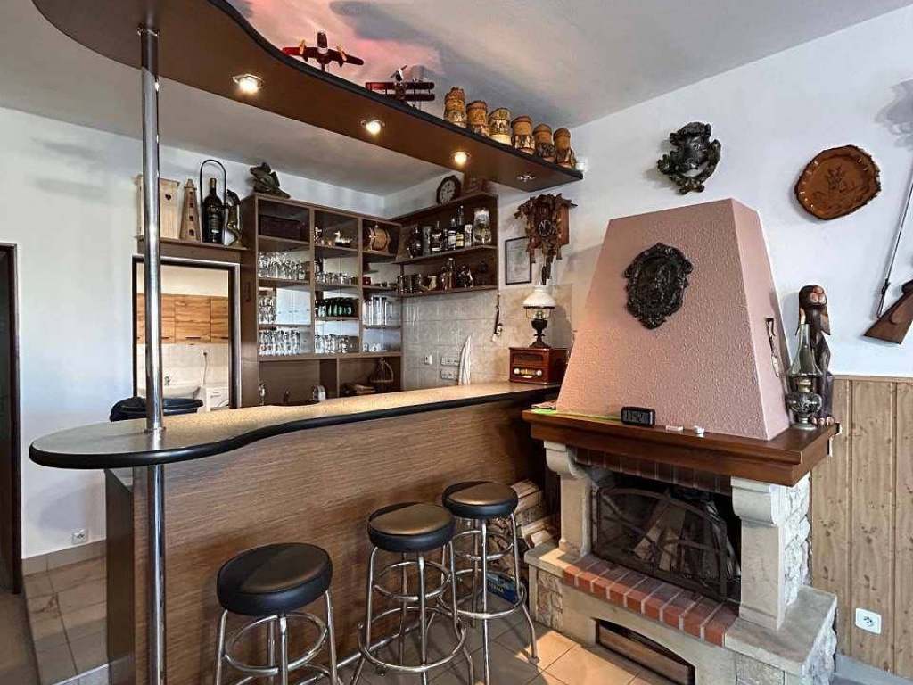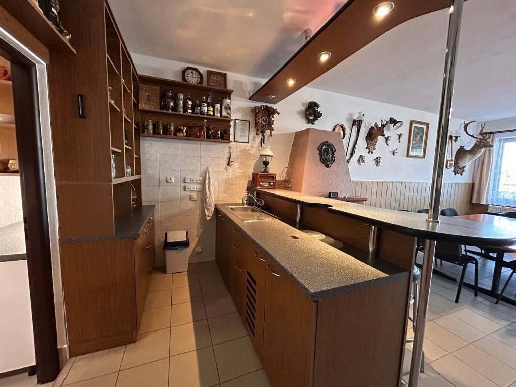 kompletní vybavení kuchyně, automatická pračka, myčka, sporák, mikrovlnná trouba, konvice, velká lednice s mrazákem, veškeré nádobí + sklo do baru. Před vstupem podesta - zahradní nábytek s plynovým grilem.