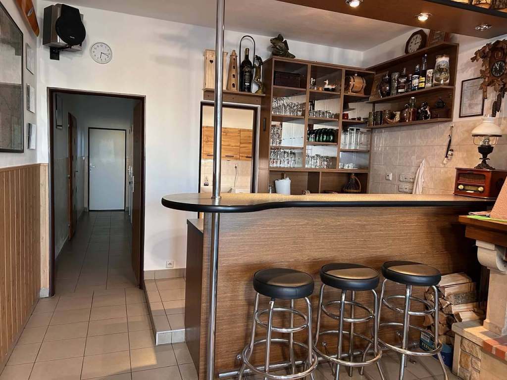Apartmán má jednu samostatnou ložnici se čtyřmi lůžky. Dvě jsou samostatná lůžka, jedna manželská postel. Ve společenské místnosti se nachází velký prostorný stůl pro cca 12 lidí, otevřený krb, bar plně vybavený, možno instalace pípy na točené pivo, limo. Zde je možné přidat další dvě plnohodnotná lůžka. V této místnosti je k dispozici velkoplošná televize. Ze společenské místnosti navazuje kuchyňka, plně vybavená.
