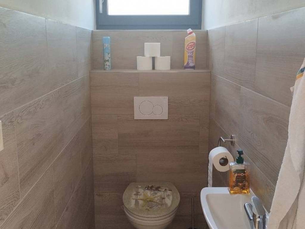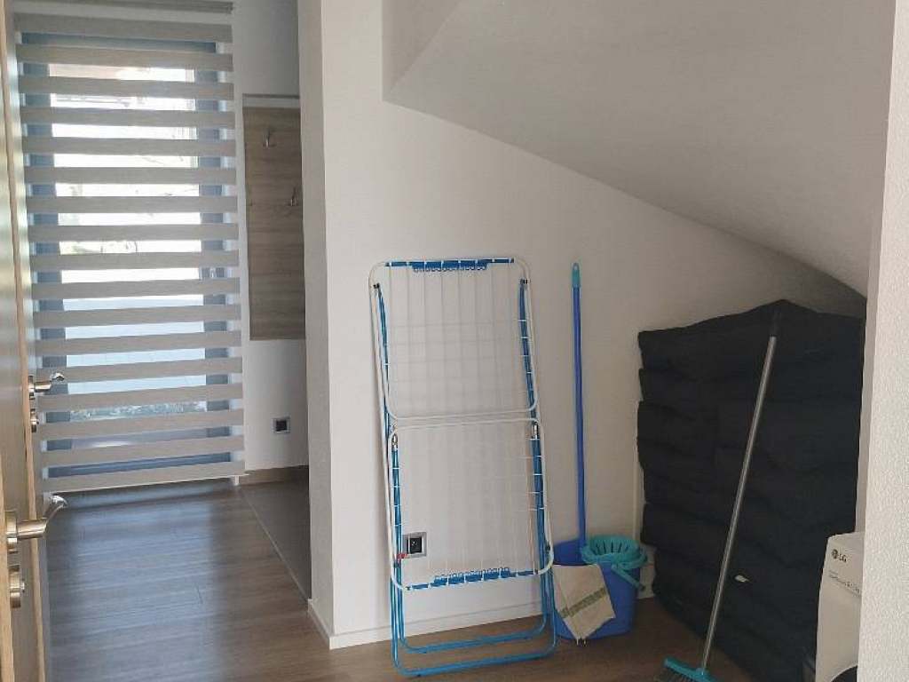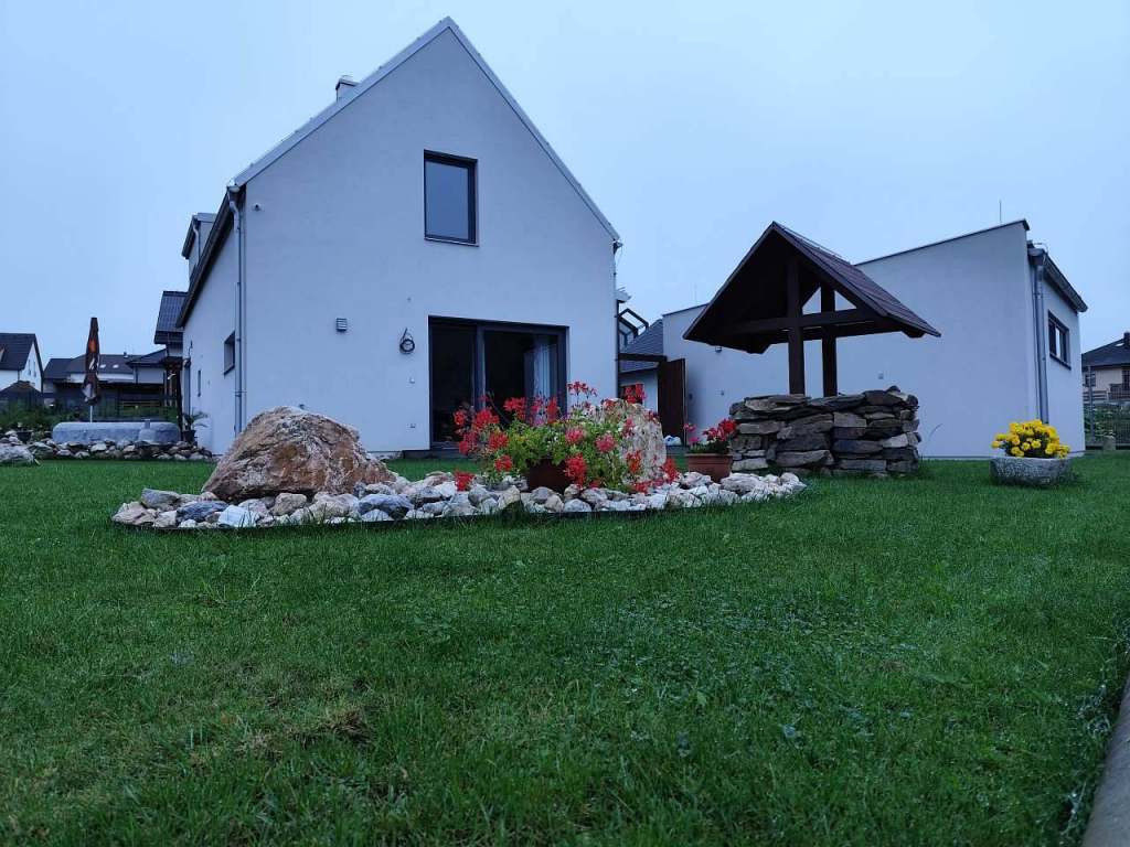 V přízemí se nachází předsíň, toaleta, sprchový kout, kuchyň s obývacím pokojem a výstupem na zahradní terasu. V 1.np. se nachází 2 pokoje. Jeden pokoj s manželskou postelí a ve druhém pokoji 3 samostatné postele.