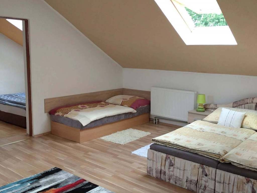 Kapacita 7 osob (větší ložnice pro 5 osob s možností přistýlky, menší pro 2 osoby), klidná lokalita, samostatné postele.