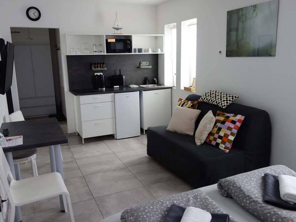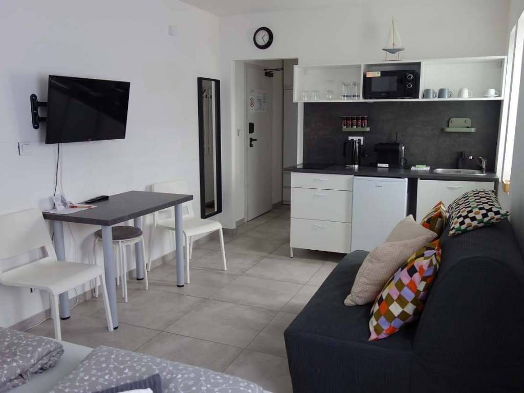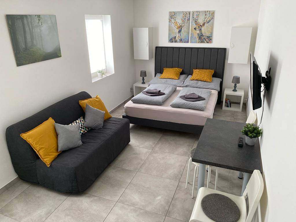 Apartmán s kuchyňským koutem, manželskou postelí a rozkládací pohovkou jako přistýlka (tedy 2+2).