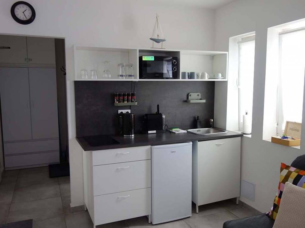 Vlastní vybavená kuchyňka součástí apartmánu (káva, čaj, cukr, sušená smetana, základní koření).