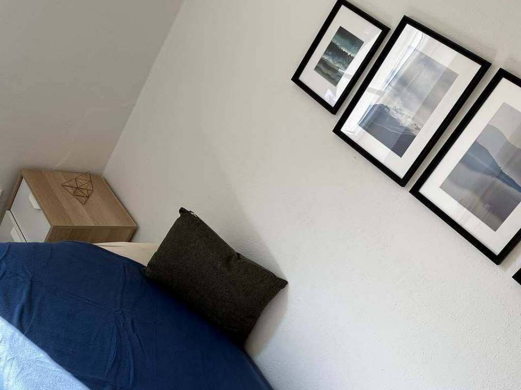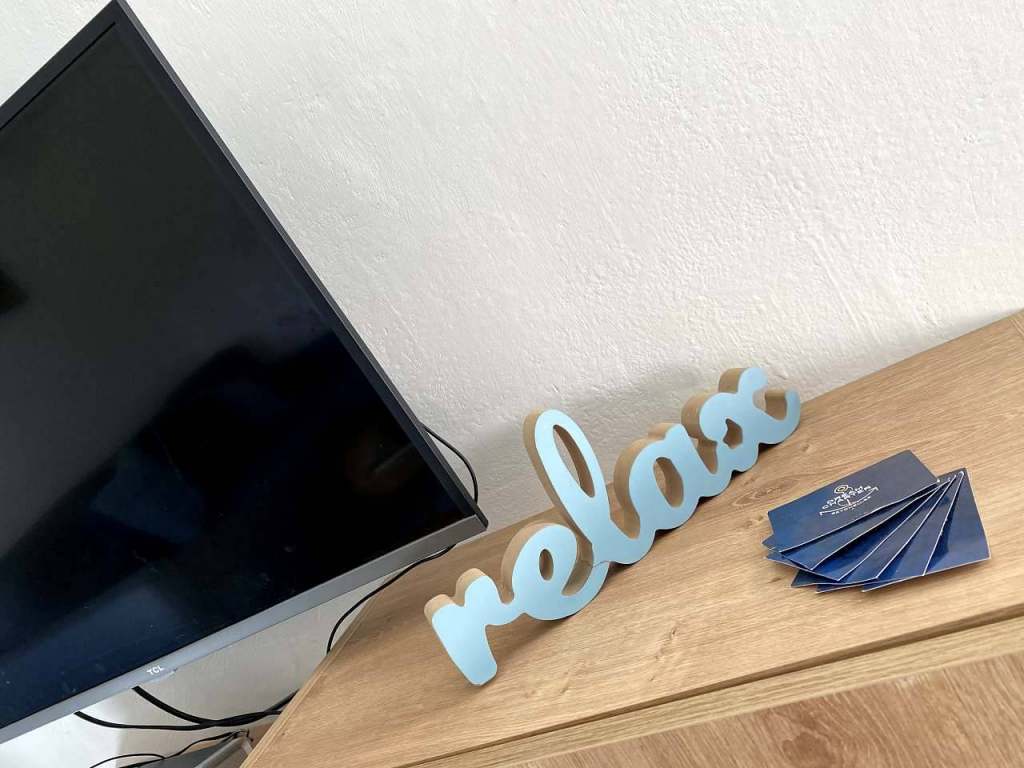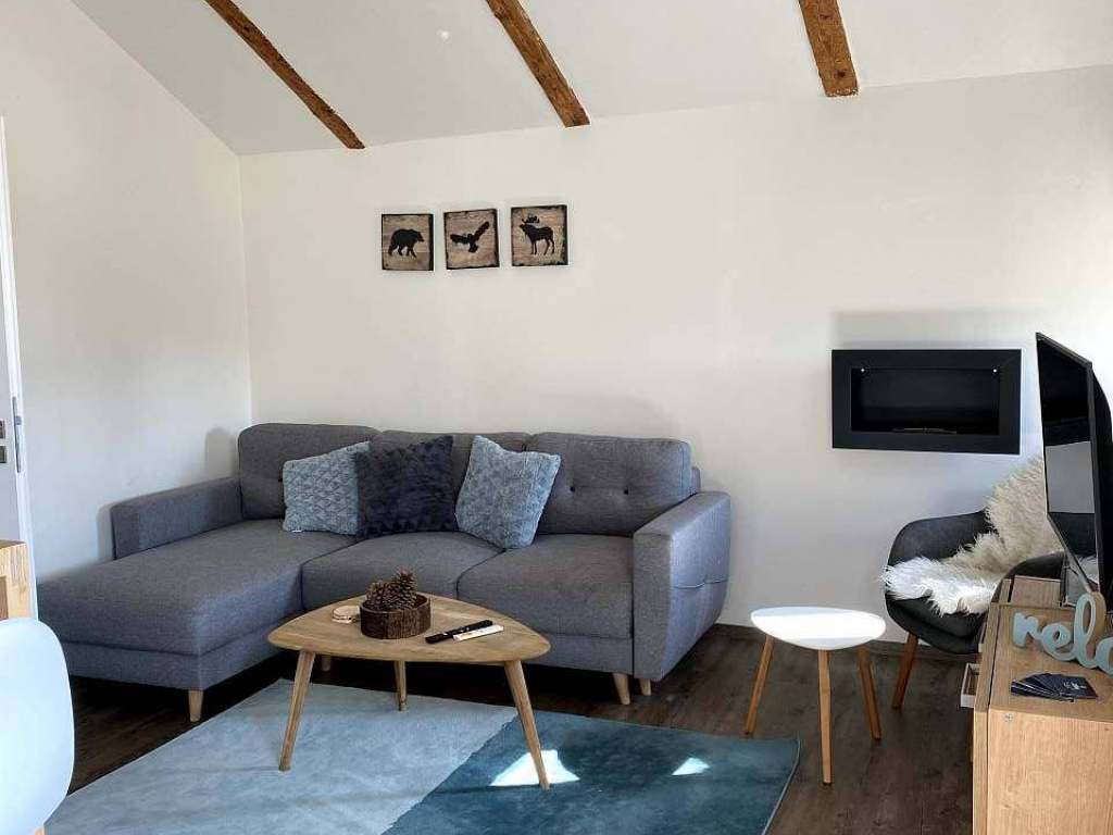 Obývací pokoj spojený s kuchyňským koutem je vybaven rozkládací pohovkou, tv, kávovarem, barem na sezení a dalším příslušenstvím. Ložnice je rozdělená skříní a najdete v ní jedenkrát dvojlůžko a dvě samostatné postele.