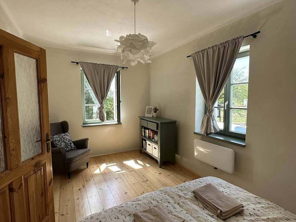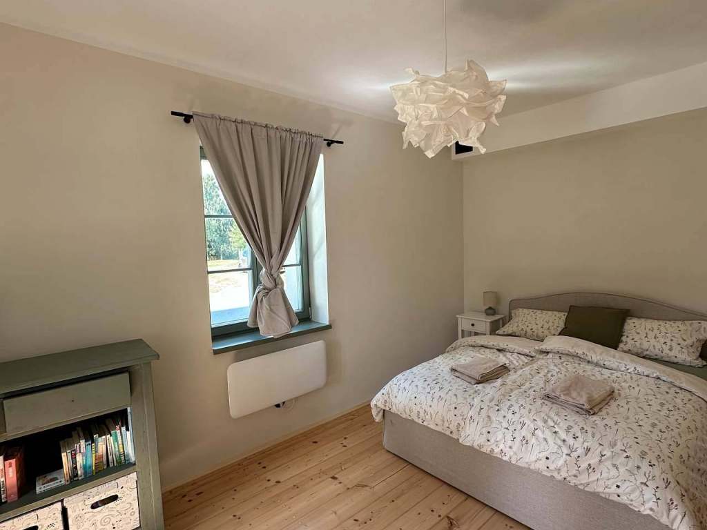 Ložnice s pohodlnou manželskou postelí 160x200cm. Obývací pokoj s další manželskou postelí 180x200cm a rozkládací pohovkou - ideální pro odpočinek nebo ubytování více hostů.