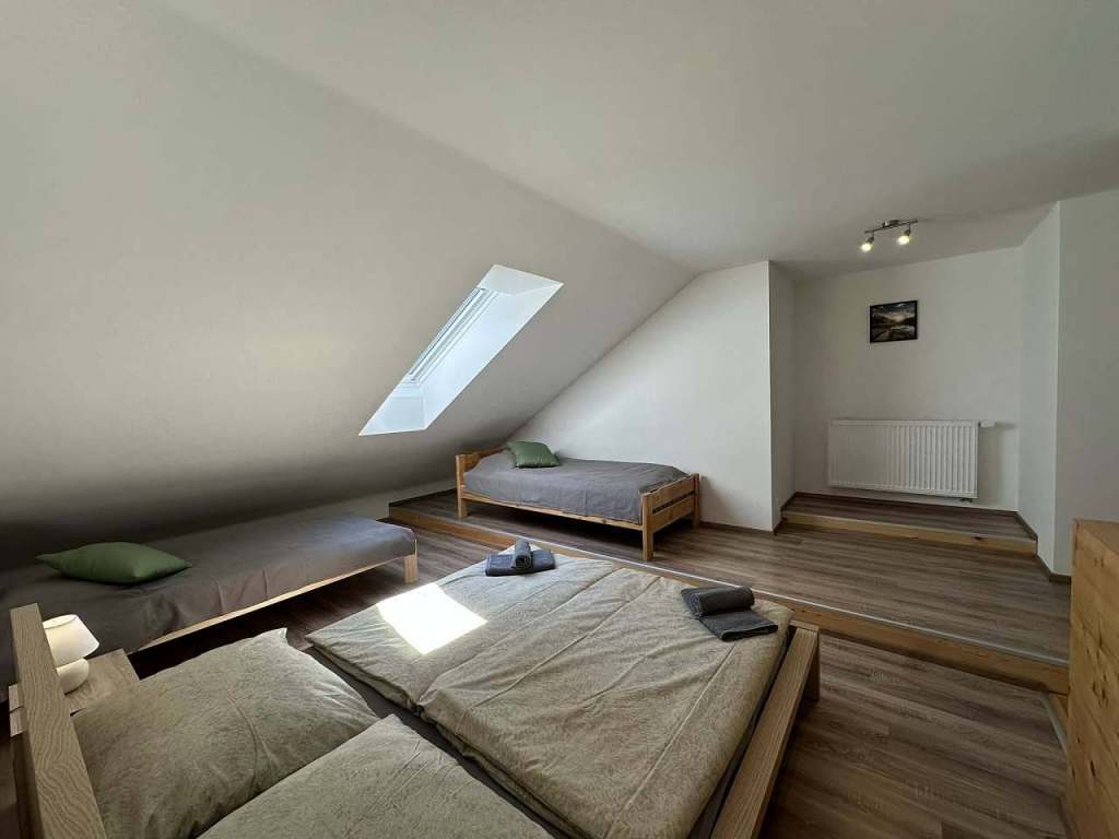 Apartmán se skládá z kuchyně a obýváku v jedné místnosti, prostorné předsíně, koupelny spojené s WC a otevřené galerie, v které se nachází útulná ložnice s manželskou postelí a dvěma lůžky - jedno určeno pouze pro děti.
