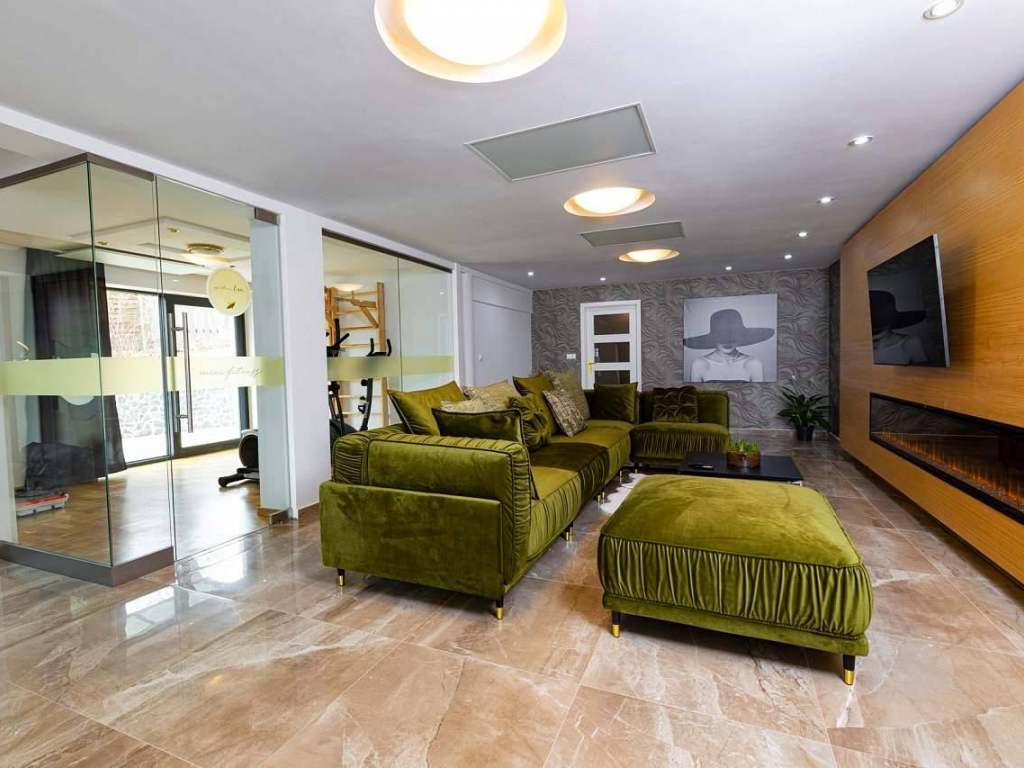 1 x spálňa so šatníkom. 1 x wellness, vírivka + sauna, súčasť objektu len pre Vás. 1 x kuchyňa. 1 x Minifitko. 1 x obývacia izba.