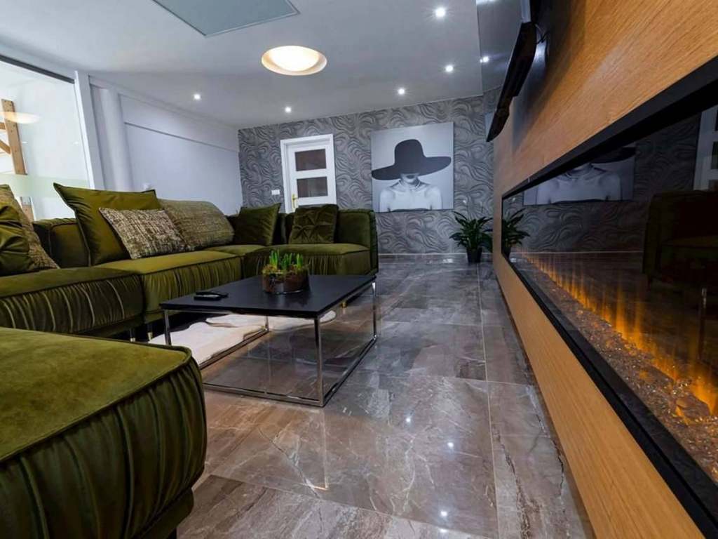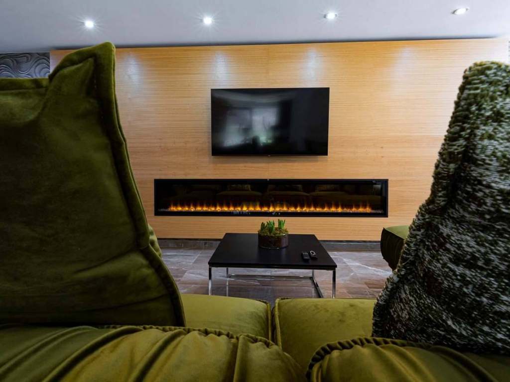 Smart TV + wifi, 3D elektrický krb, klimatizácia, minifitko, privátny wellness počas celého pobytu, kompletne vybavená kuchyňa, rúra, mikrovlnka, umývačka, kávovar, hriankovač, chladnička s mrazničkou, indukčná varná doska.