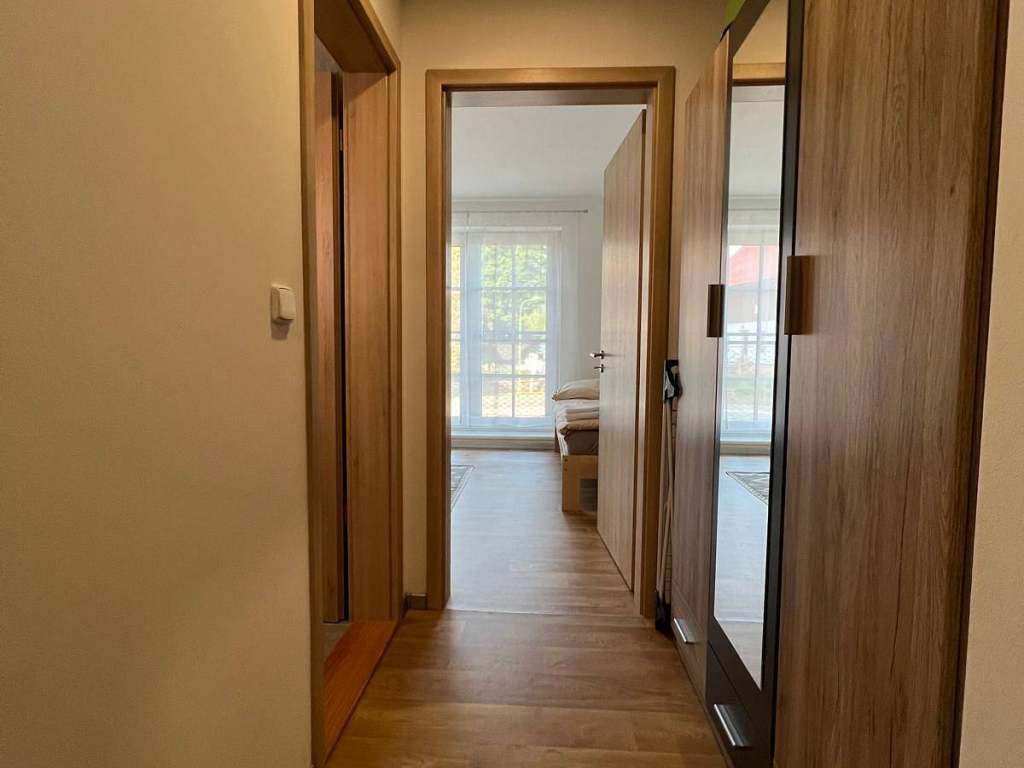 Předsíň: šatní skříně, věšáková stěna, botník, rozkládací sušák na prádlo.