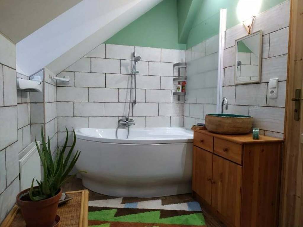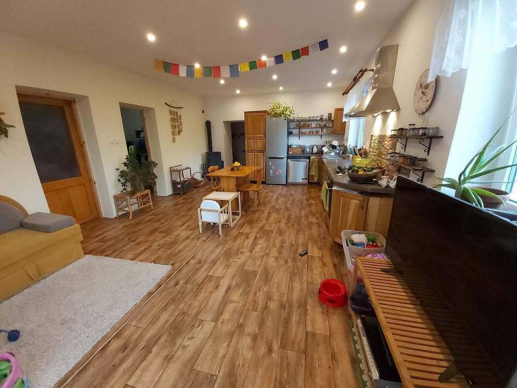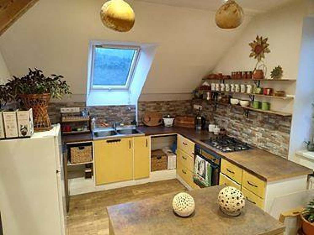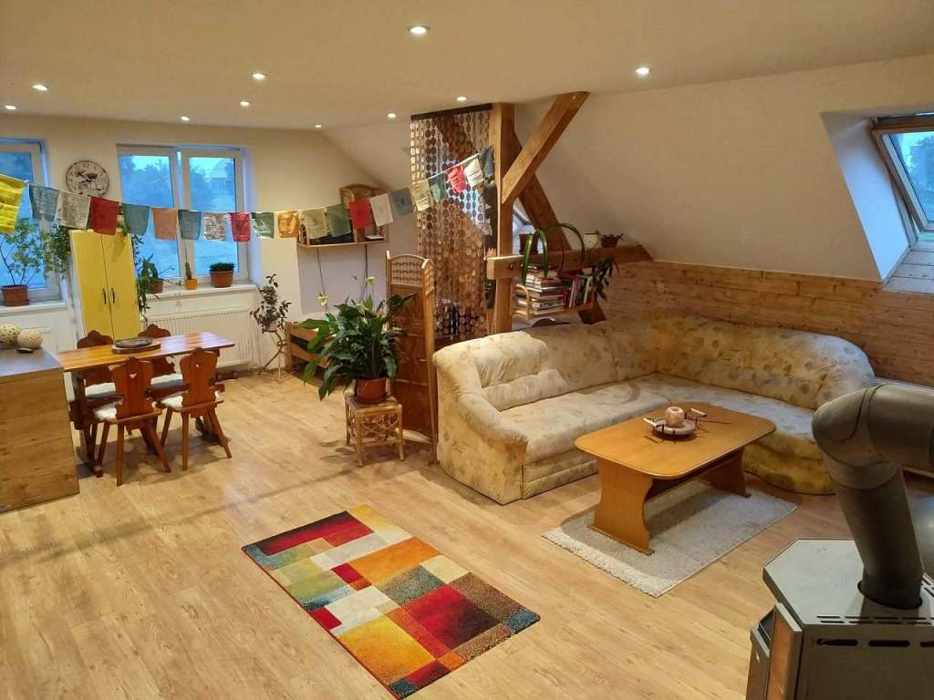 V létě nabízíme k pronájmu podkrovní apartmán pro max. 7 osob, který nabízí velký pokoj s kuchyní, obývákem a kamny. Kuchyně je vybavena pro dlouhodobý pobyt s veškerým vybavením, které můžete potřebovat. V obývací části je umístěno 5 postelí. Součástí apartmánu je jedna větší ložnice s manželskou postelí a velkou šatní skříní. Koupelna je vybavena vanou. K dispozici jsou 2 toalety.