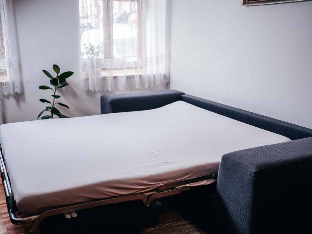 Ložnice (2 osoby) - manželská postel. Obývák s kuchyní (2 osoby) - pohodlná rozkládací pohovka, jídelní stůl, 4 židle, vybavená kuchyň.