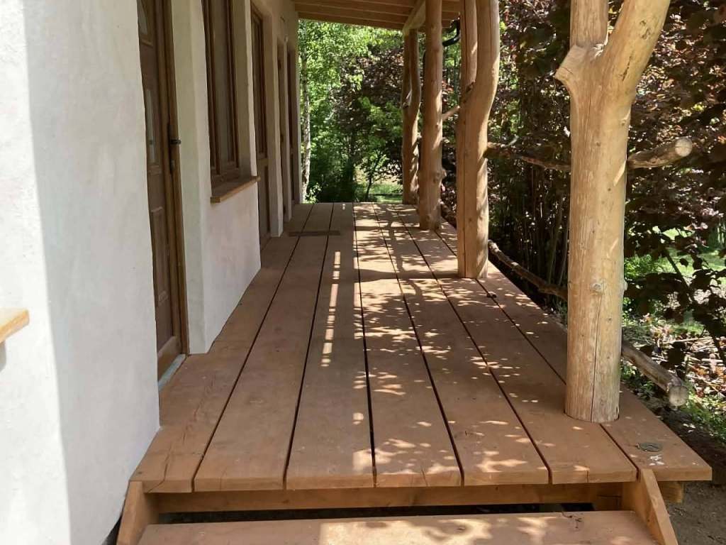 Apartmán je zajímavý vnitřními hliněnými omítkami se sgrafitem a z oken je krásný výhled do daleké krajiny. Stačí pár kroků a uvidíte východ i západ slunce. Spát budete v naprostém tichu, a při brzkém probuzení se může podařit pozorovat přímo z postelí příchozí srnky, zajíce či veverky :-).