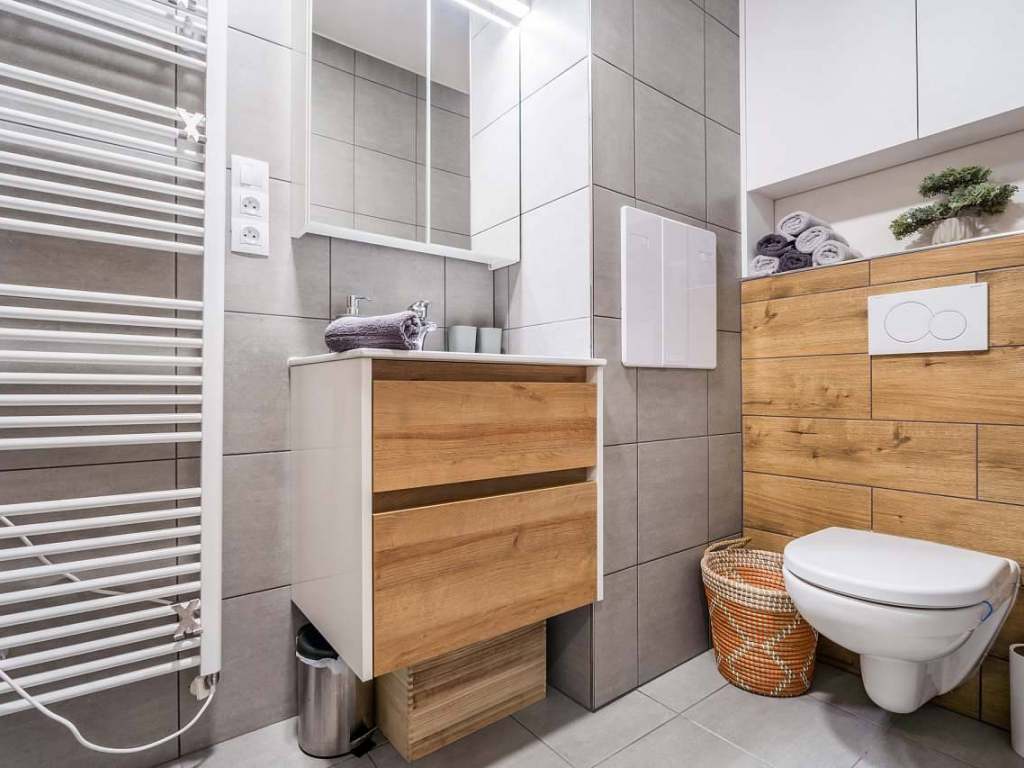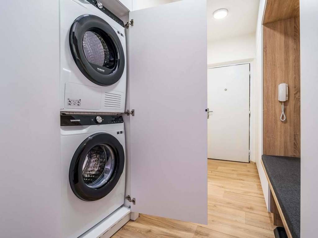 Apartmán nabízí dostatečné množství úložných prostor, kuchyně je vybavena myčkou, mikrovlnkou, varnou deskou, troubou, lednicí s mrazničkou, rychlovarnou konvicí, toustovačem a topinkovačem včetně nádobí pro pohodlné vaření. Pro lepší komfort je apartmán vybaven pračkou a sušičkou. Apartmán je vybaven TV a WiFi připojením. K dispozici je i dětská jídelní židlička.