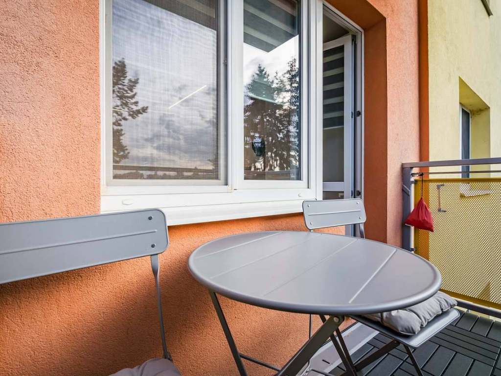 Apartmán je vybaven obývacím pokojem s pohodlnou manželskou postelí pro 2 osoby. Na obývací pokoj navazuje ložnice se 4 lůžky a psacím stolem, odkud se dostanete na balkonek, na kterém je umístěn stoleček a židle.