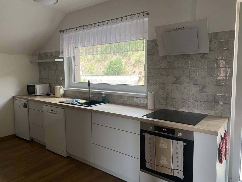 Apartmán je plně vybaven, myčka, lednička, trouba a indukční varná deska. LED televize a internet.