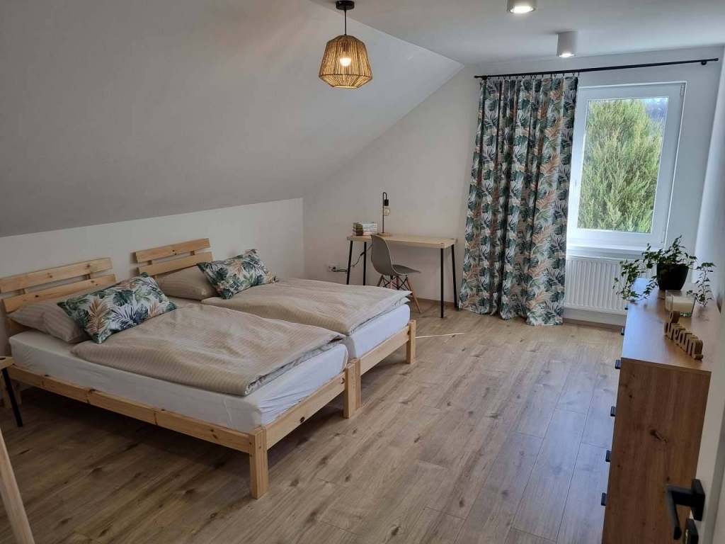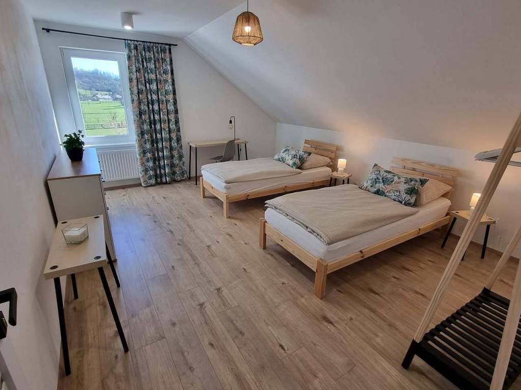 V každém pokoji jsou dvě postele, které lze libovolně přesunout. Připraven je pracovní stůl, věšák a komoda. Na postelích jsou toppery z paměťové pěny, na oknech zatemňovací závěsy.