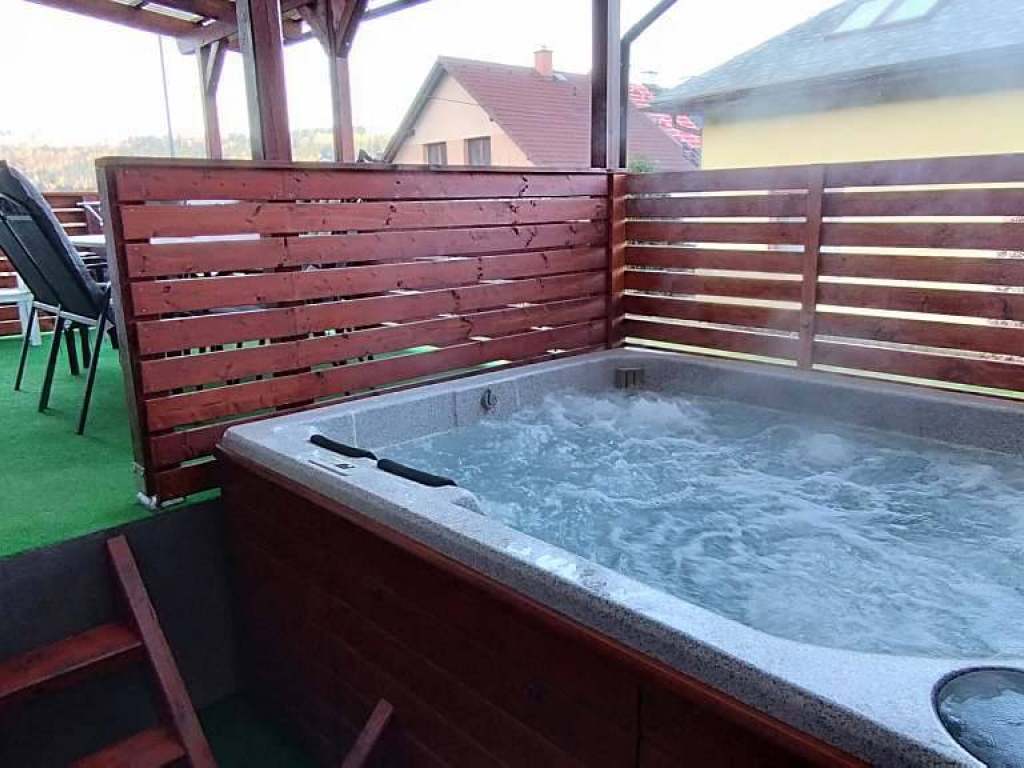 Apartmán 2+1 se zahradou a krytou terasou s vířivkou navazující přímo na objekt. Při vstupu do objektu vás uvítá větší chodba, kde se nachází infrasauna, vlevo od vchodu najdete kuchyň s veškerým vybavením včetně kávovaru. Naproti kuchyni přes chodbu se nachází vstup do obývací pokoje, kterému dominuje velká rozkládací sedací souprava, která zároveň slouží jako přistýlka. V obývacím pokoji dále najdete velkou šatní skříň a samozřejmě TV. Z obývacího pokoje je dále vstup do ložnice, kde na vás čeká velká manželská postel, dále další dvoulůžko o rozměrech 140x200cm a dětská postel se zábranou. V ložnici se nachází i dětský koutek, kam můžete vaše ratolesti "odložit" a užít si svoji chvilku např. u dobré kávy. Před vchodem do objektu je nově vybudována zastřešená terasa, kde si můžete užít chvilky relaxu ve vířivce, pohody u kávy, vína.