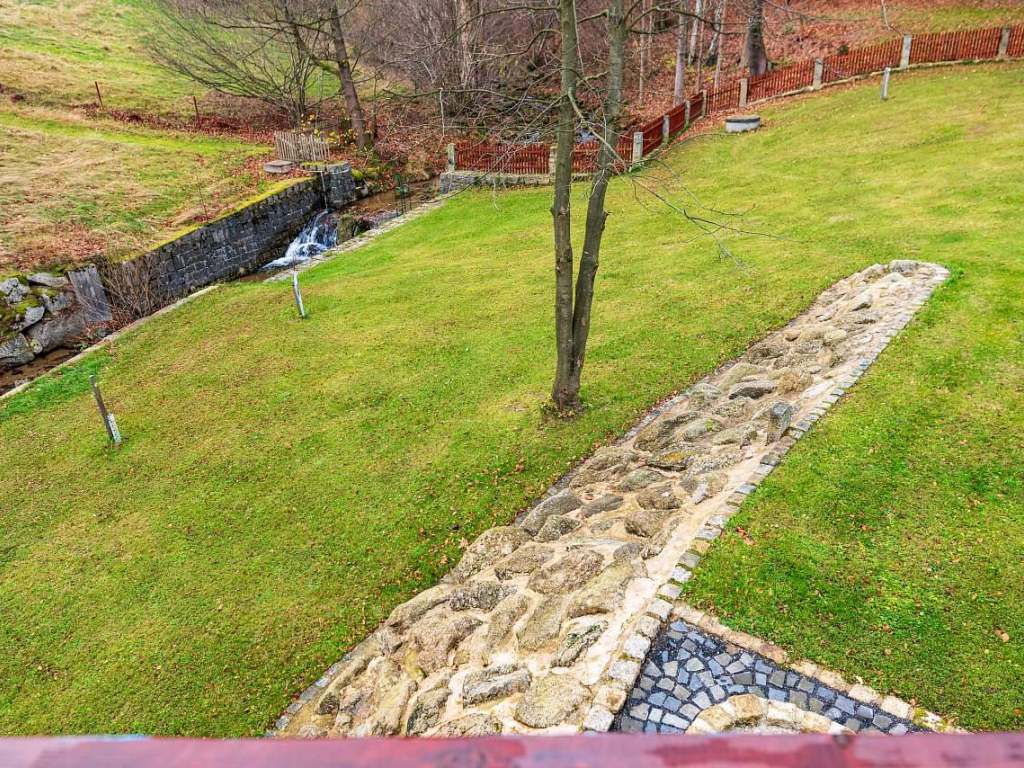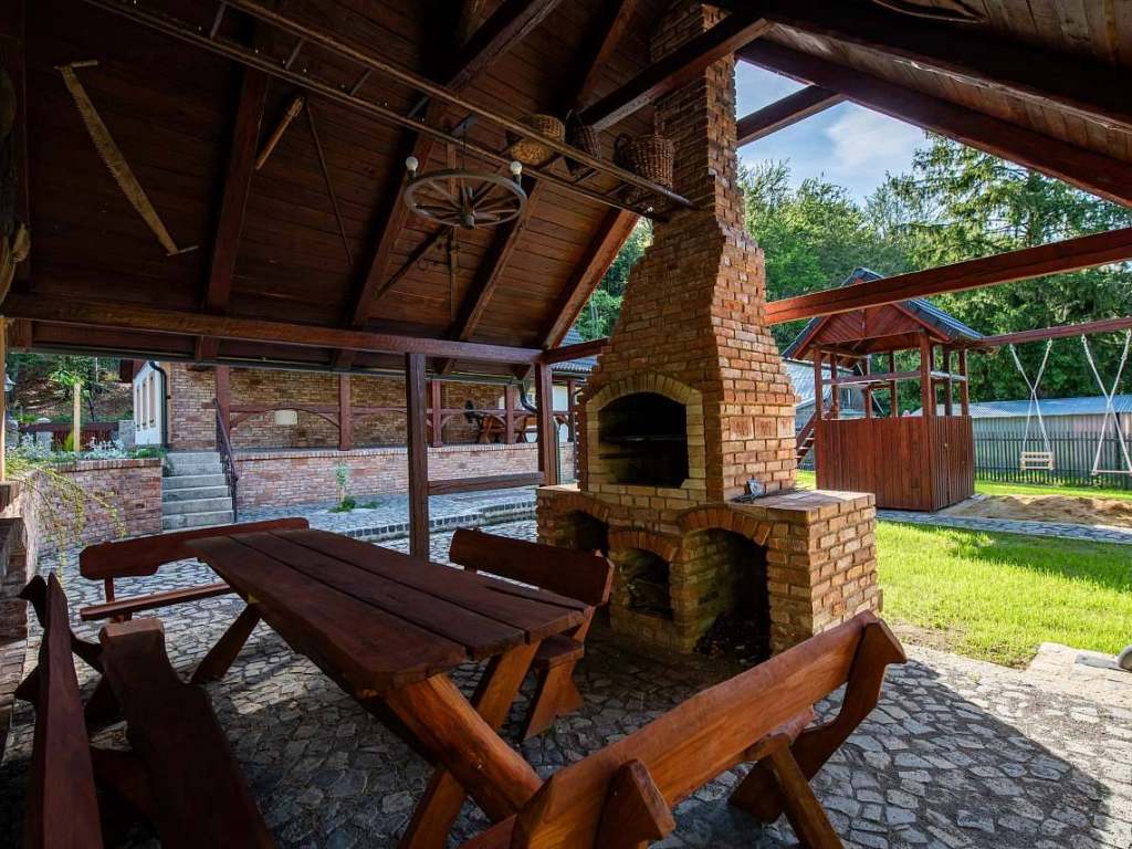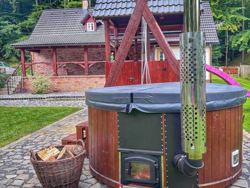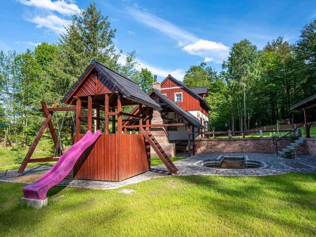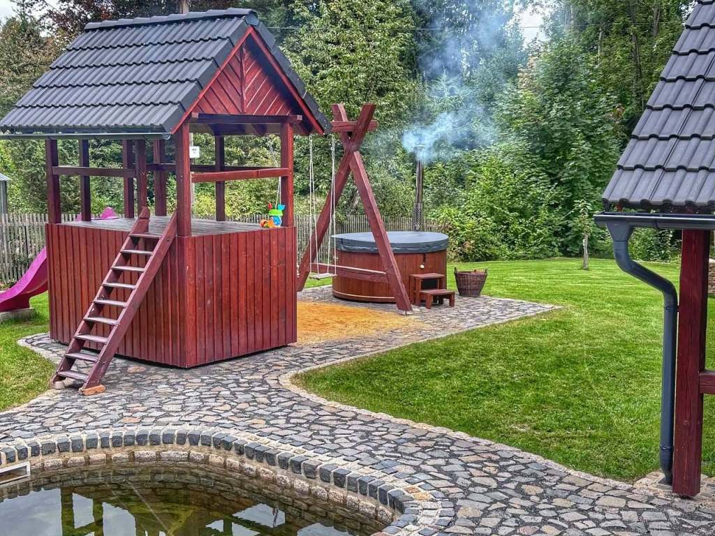 Vybavená kuchyň včetně základního nádobí (talíře, hrnce, skleničky, hrnky, příbory) a včetně spotřebičů (trouba se sporákem, lednice, mikrovlnka, rychlovarná konvice, kávovar na kapsle Tassimo - kapsle lze použít vlastní nebo jsou k dispozici za poplatek 10,- Kč/kus). Pokoj vybavený TV. Ložní prádlo součástí. Již bude čistě povlečeno. Ručníky, přezůvky a ostatní potřeby vlastní. Venkovní posezení na terase nebo v pergole s krbem. Dřevo k dispozici. Velká zahrada s travní plochou a vyžitím pro děti. Celoročně k dispozici koupací sud s vířivkou. Hned vedle chalupy protéká potok, tato část bez oplocení.