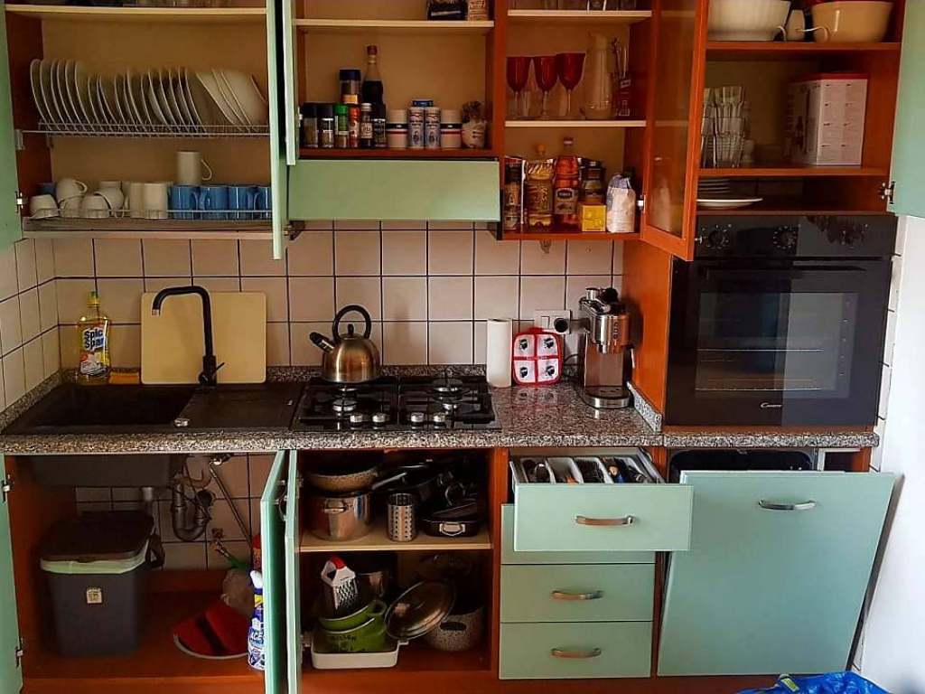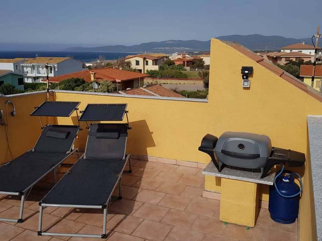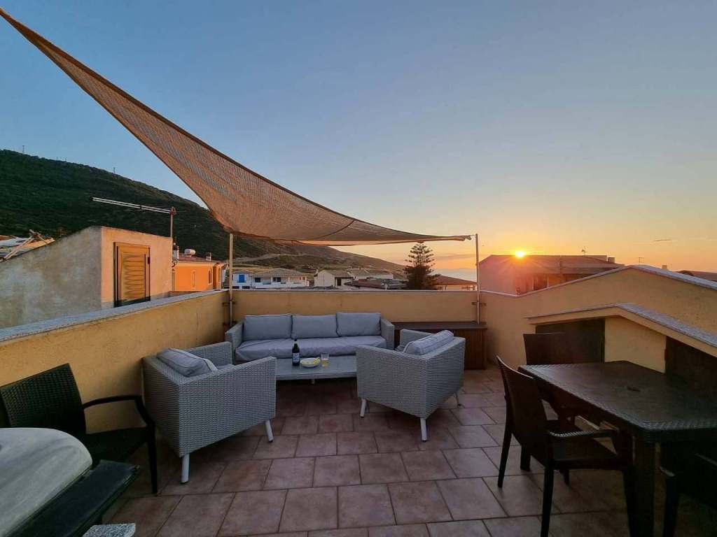Jedná se o prostorný apartmán v 1.patře pro 5 - 9 osob 3+kk. Je zde ložnice s manželskou postelí, dětský pokoj s třemi lůžky, dvě sociální zařízení, obývací pokoj + dva rozkládací gauče, kuchyň s jídelnou, pracovna, terasa s dalším jídelním stolem, balkón a sluneční terasa na střeše. Vše je kompletně vybavené. Naleznete zde také lehátka na slunění, slunečník, gril na večerní párty, rybářské vybavení. Kvalitní internet připojený na TV, NETFLIX. Pokud plánujete pracovat vzdáleně, je zde k dispozici samostatná pracovna, která je vybavena pracovním stolem, monitorem i tiskárnou. Klimatizace v každé místnosti, myčka, pračka je rovněž součástí. K apartmánu náleží parkovací místo ve vnitrobloku. K dispozici pro objevování okolí dvě koloběžky KOSTKA. Pokud budete mít zájem k dispozici za poplatek škoda Fabia Kombi přistavena na parkovišti na letišti Alghero.