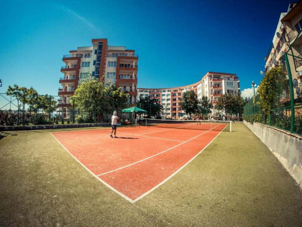 V komplexu najdete sportovní hřiště, tenisový kurt, vířivku, venkovní bazén s lehátky, které můžete užívat bez poplatku, písečná pláž hned za branou rezortu, masáže, knihovna, …..