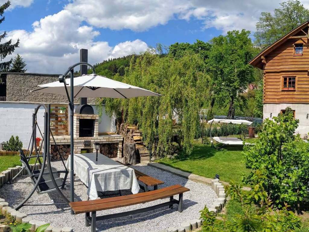V letních měsících je k dispozici zahrada s bazénem, houpačkou a pískovištěm, což ocení zejména rodiny s dětmi. Posezení u venkovního krbu s grilem přináší příležitost k příjemným večerům. Veškeré potřeby ke grilování, včetně dřeva, jsou zajištěny.