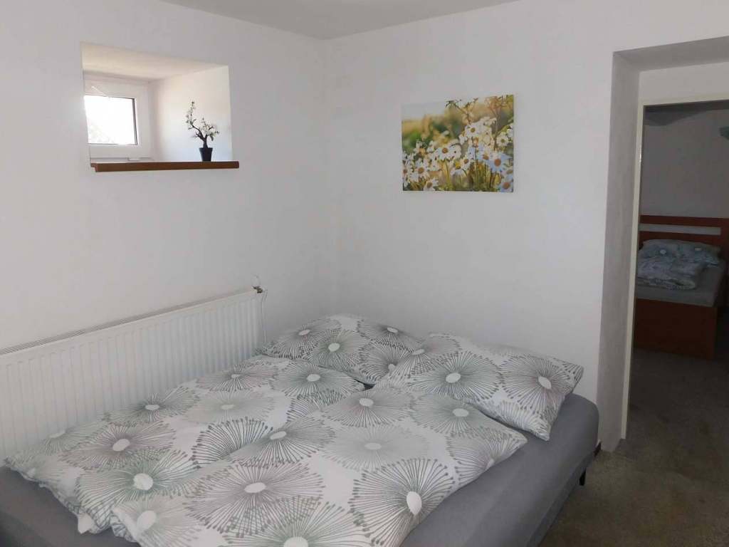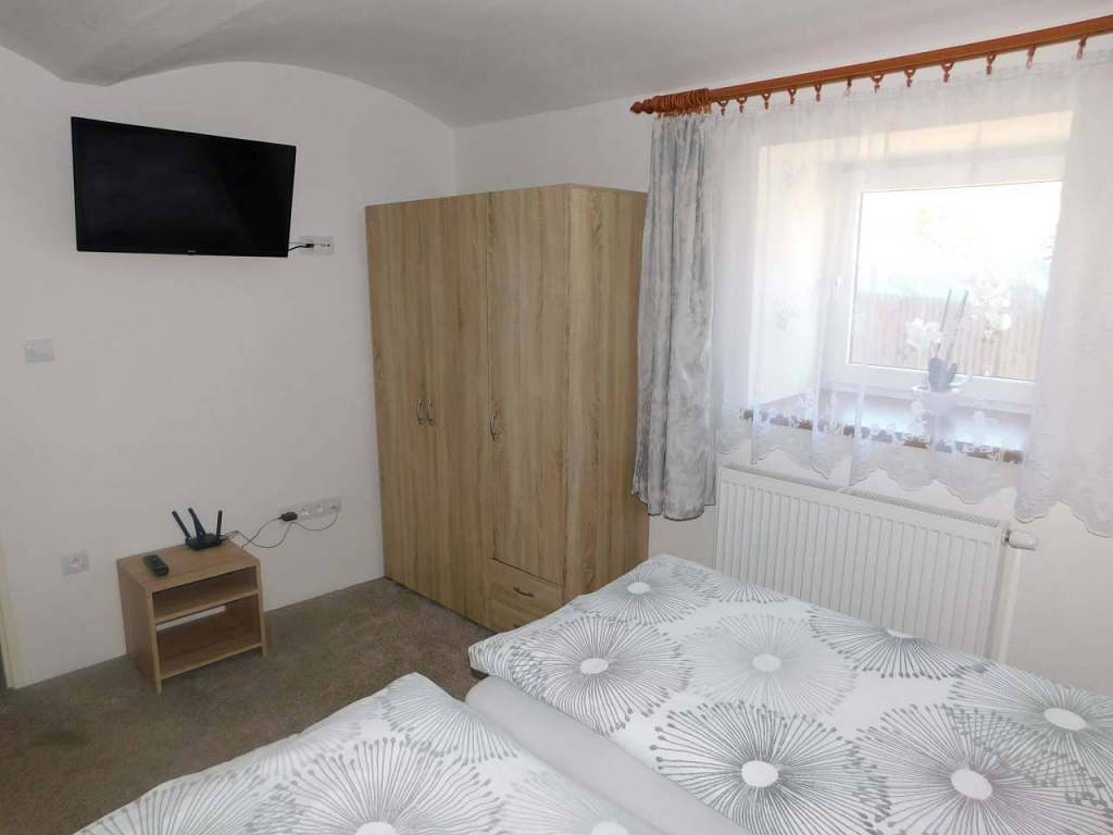 V Apartmánu č. 1 je ložnice s manželskou postelí a válendou, pokoj pro 2 osoby spojený s kuchyní. V každé místnosti je televize.