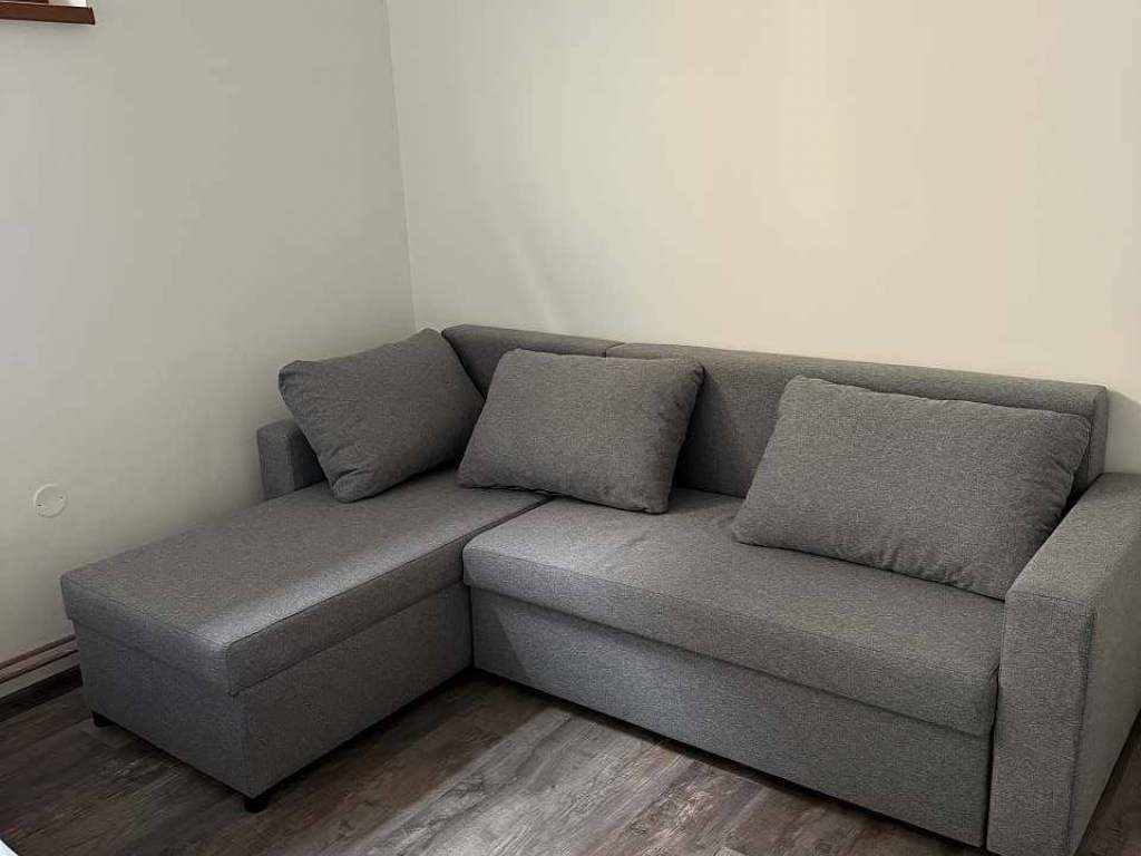 Kuchyň kompletně vybavená, varná indukční deska, trouba, myčka nádobí, mikrovlnná trouba, varná konvice.