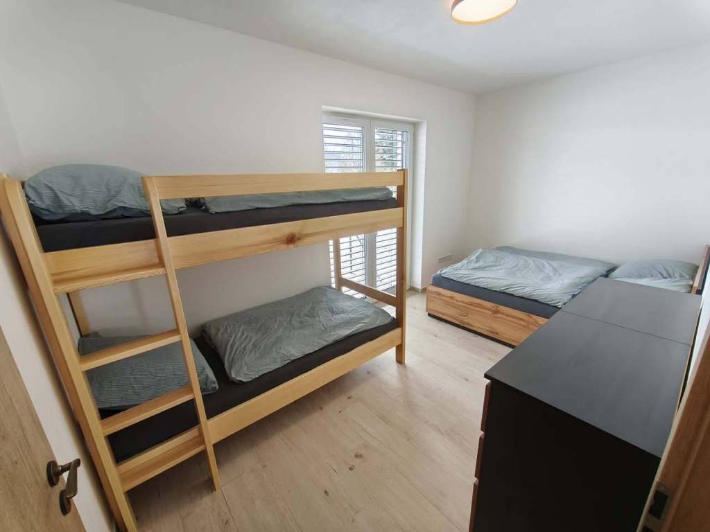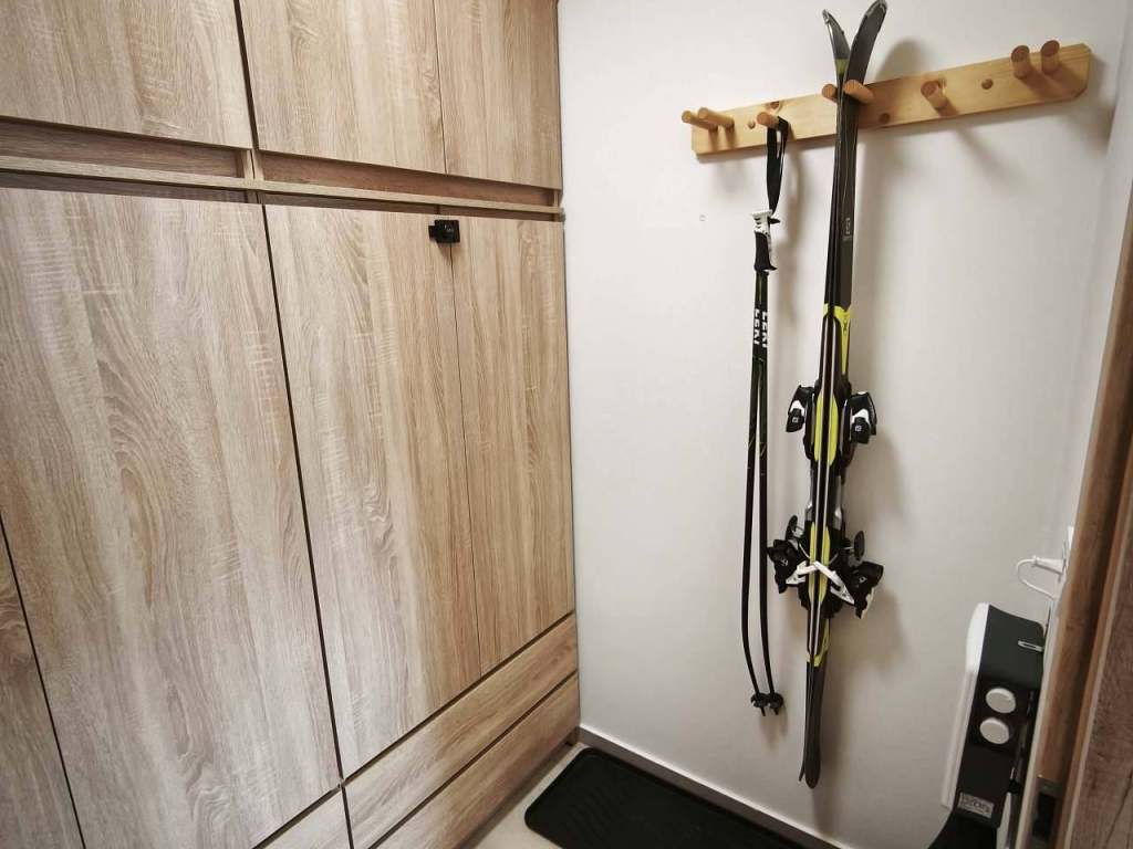 Součástí apartmánu je obývací pokoj s kuchyňským koutem, samostatná ložnice s manželskou postelí a patrovou postelí, místnost pro uložení lyží, sušení lyžáků a uložení potřebných věcí, koupelna a terasa, kde si můžete vychutnat ranní kávu nebo večerní odpočinek. Kuchyň je plně vybavena pro přípravu vlastních jídel. K dispozici je také vlastní kryté parkovací místo přímo u objektu.
