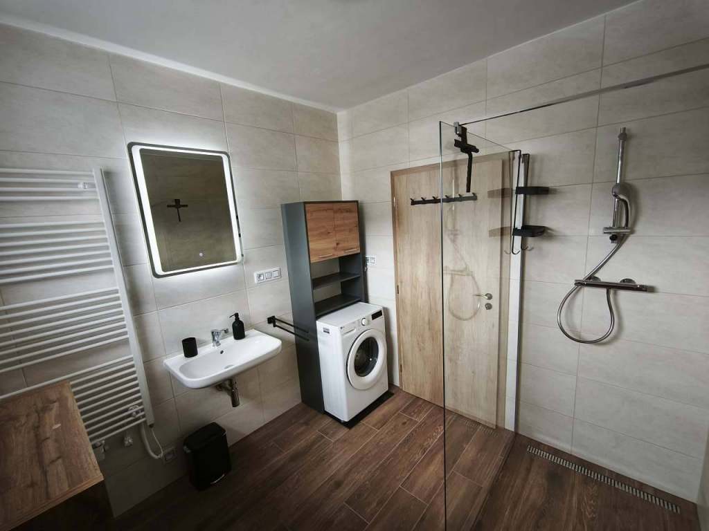 - Sociální zařízení: sprchový kout, pračka