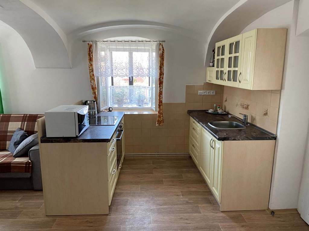Kuchyňský kout je plně vybavený (lednice, mikrovlnná trouba, elektrický sporák s varnou deskou, trouba, varná konvice), V obývacím pokoji je TV.
