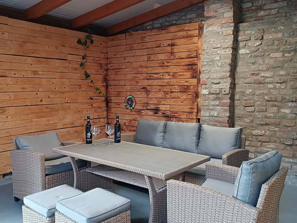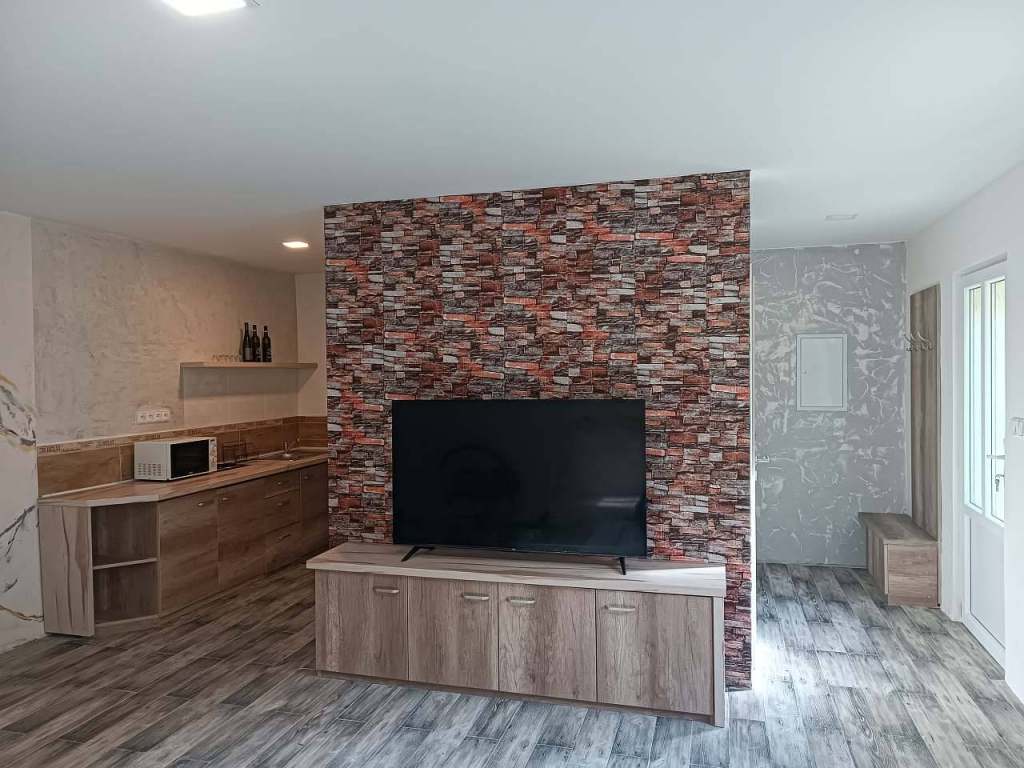 Apartmán je situován v malebné zahradě s posezením, velkou zastřešenou pergolou, možnosti grilování, na zahradě je pro děti trampolína. Pro hosty je k dispozici výběr místního vína. Bezplatné parkování před objektem a Wi - Fi. Dětská postýlka na vyžádání k dispozici. V apartmánu je kuchyňský kout, TV, koupelna se sprchovým koutem, WC a dvě spací části se čtyřmi postelemi s výhledem do zahrady.