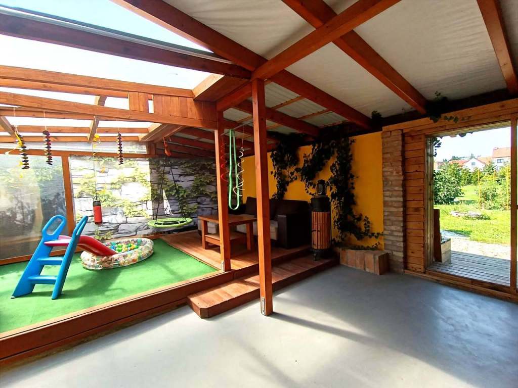 - Pro děti: pískoviště, trampolína, houpačka, k dispozici dětská postýlka