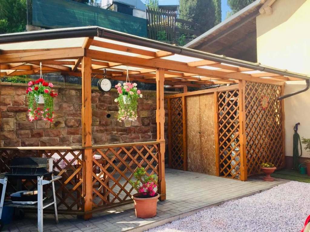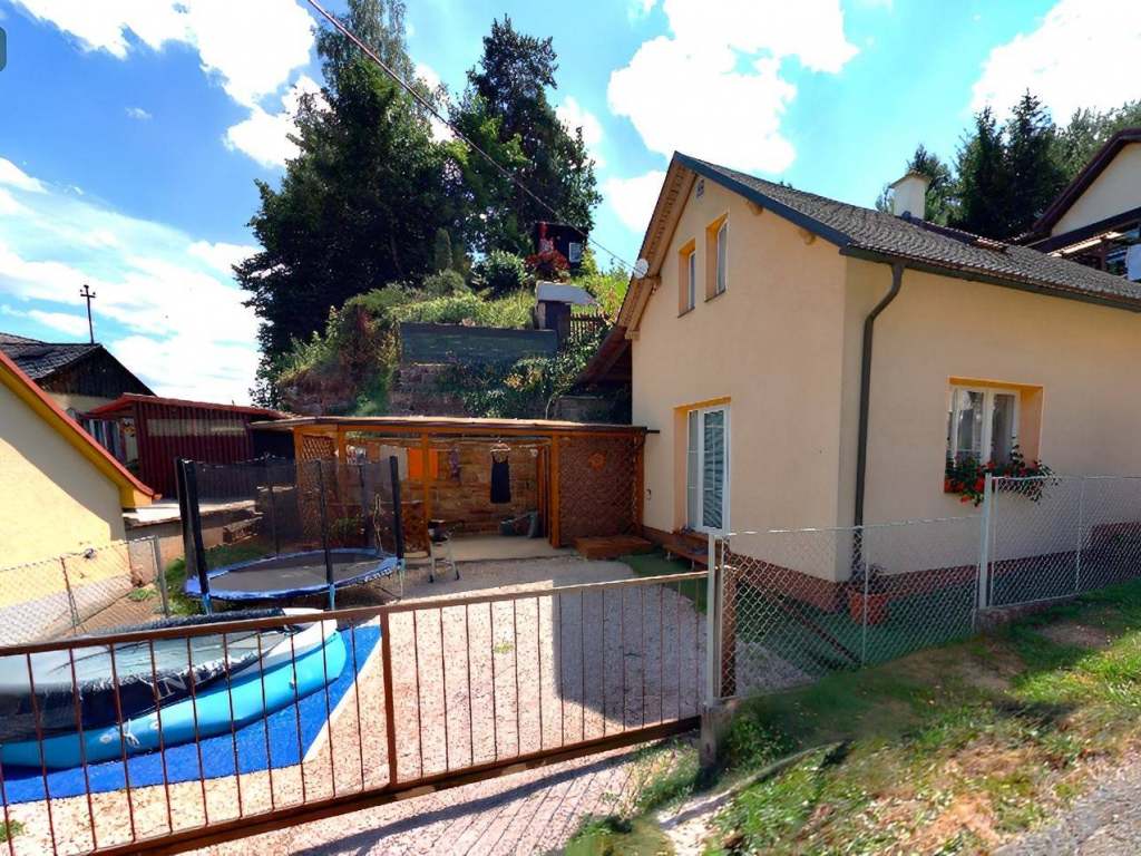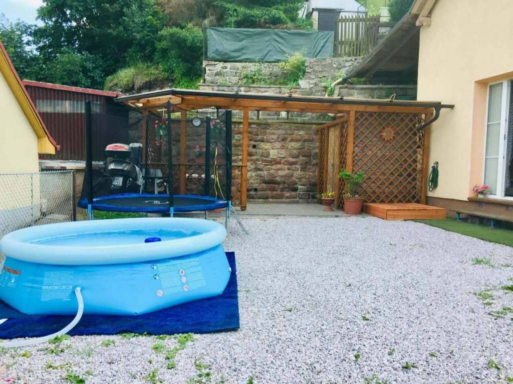 Kuchyň se všemi nezbytnými spotřebiči i nádobím. Pergola, gril, venkovní bazén, trampolína.
