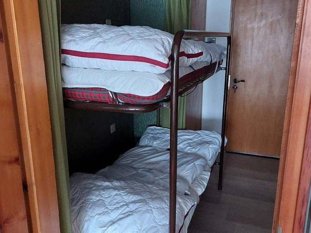 Obývací pokoj s pohodlnou pohovkou a dvěma křesly a dvě sklopné postele a kuchyňský kout s jídelním stolem. Kuchyň je plně vybavená. Na chodbě se nachází další dvě sklopné postele.