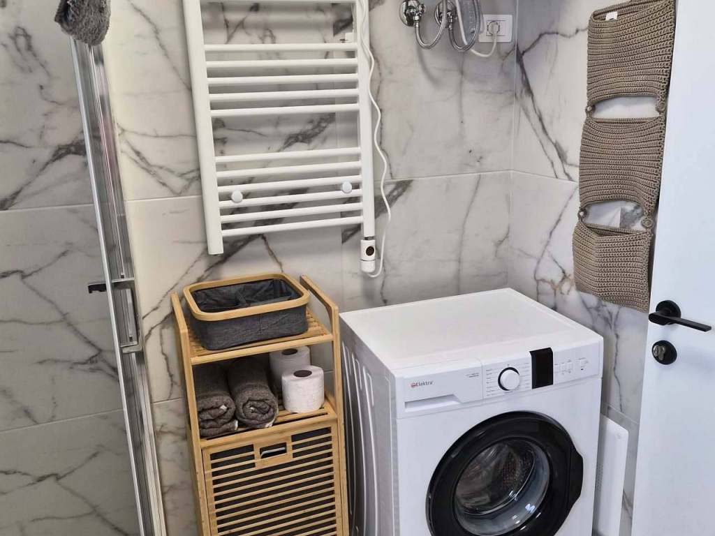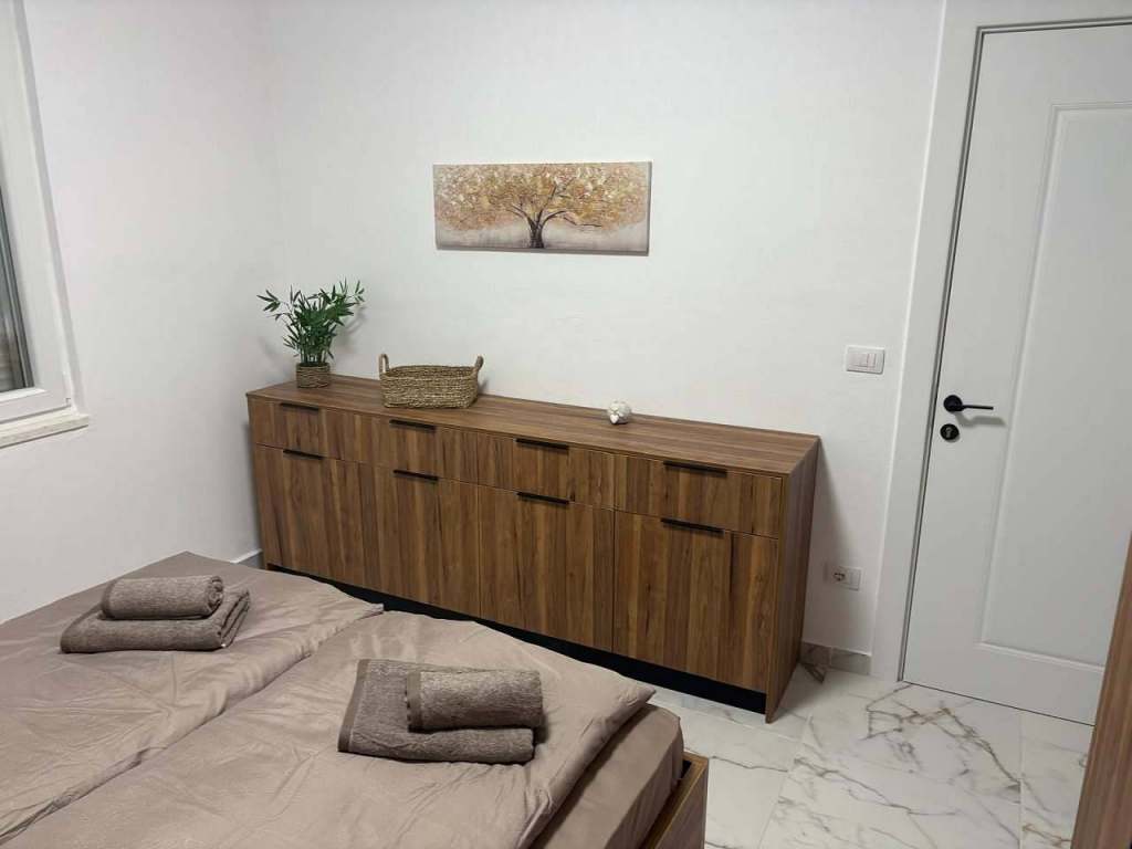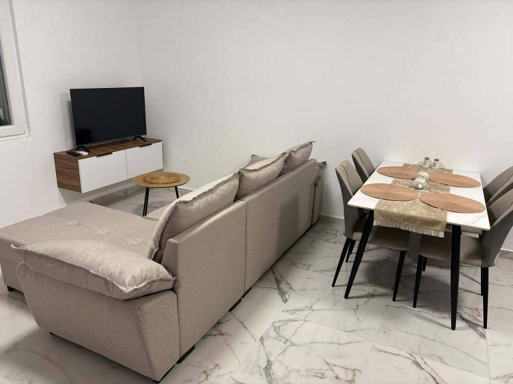 Apartmán o dispozici 2+KK je situován asi 200 metrů od moře, má rozlohu 55m² (včetně terasy 5m²), ze které je i boční výhled na moře. Je plně vybavený (sklokeramická deska, mikrovlnná trouba, myčka, pračka, sušák na prádlo a kolíčky, žehlička a žehlící prkno, fén, Smart TV s možností Netflix, Google, klimatizace (2x) a rychlá WiFi) a je tedy ideální pro kratší i dlouhodobé pobyty, pro páry nebo menší rodiny, které hledají moderní ubytování jen pár kroků od moře.