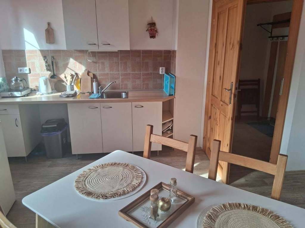 Kuchyně jsou vybaveny vařičem, mikrovlnkou, lednicí, toustovačem, nádobím, topinkovačem. V objektu na každý apartmán. Venkovní sezení gril přenosný a ohniště lehátka. k dispozici dale sklipek na kola moznost dobijeni.