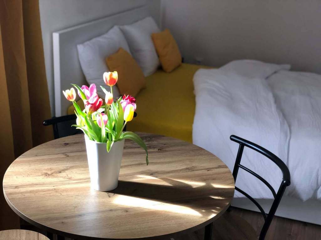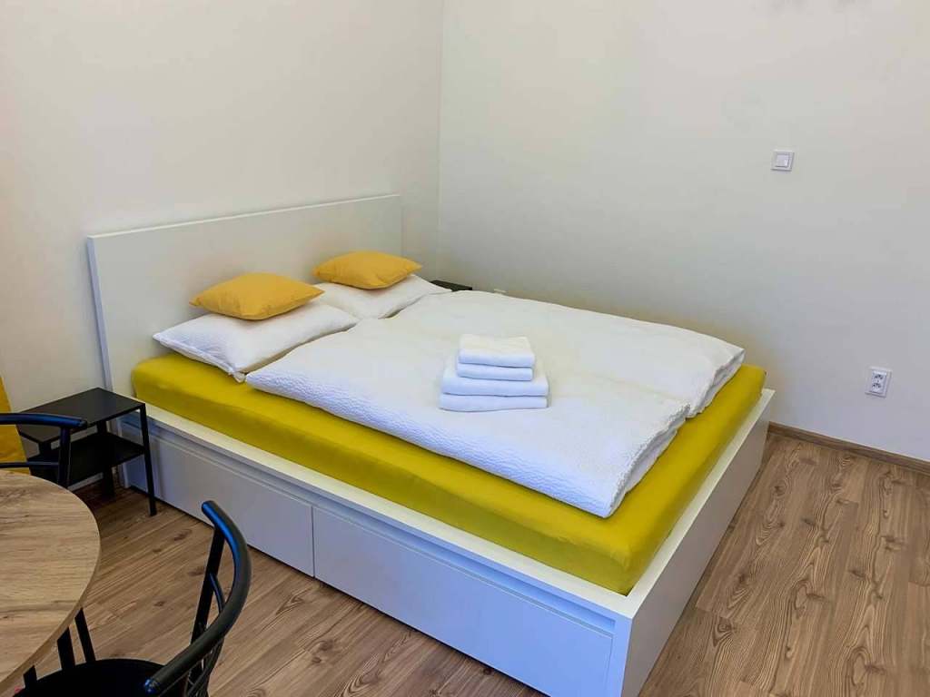 Apartmán 1 - žlutý - max. 4 osoby - manželská postel 160cm + rozkládací pohovka 140cm.