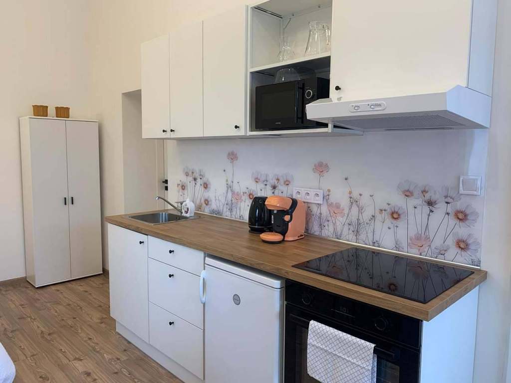K dispozici je plně vybavený kuchyňský kout s varnu deskou, troubou, lednicí s mrazákem, mikrovlnou troubou, kávovarem Tassimo a s jídelním stolem. TV - v apartmánech Netflix a internetová TV.
