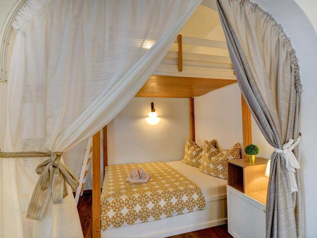 Apartmán 4 - rodinný apartmán (6 lůžek) o velikosti 48 m2.Samostatná ložnice s manželskou postelí a prostornou patrovou postelí. Dvě lůžka na patrové posteli se nacházejí v obývacím prostoru. Apartmán disponuje obývacím pokojem s vybavenou kuchyňskou linkou, jídelním stolem a TV. Součástí je koupelna se sprchovým koutem, vanou a toaletou. Dva balkóny s částečným výhledem na náměstí.