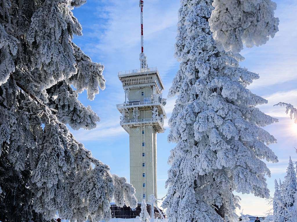 krátký vlek s večerním lyžováním v obci, 6 km vzdálené největší středisko Krušných hor Klínovec, za ním Boží Dar.