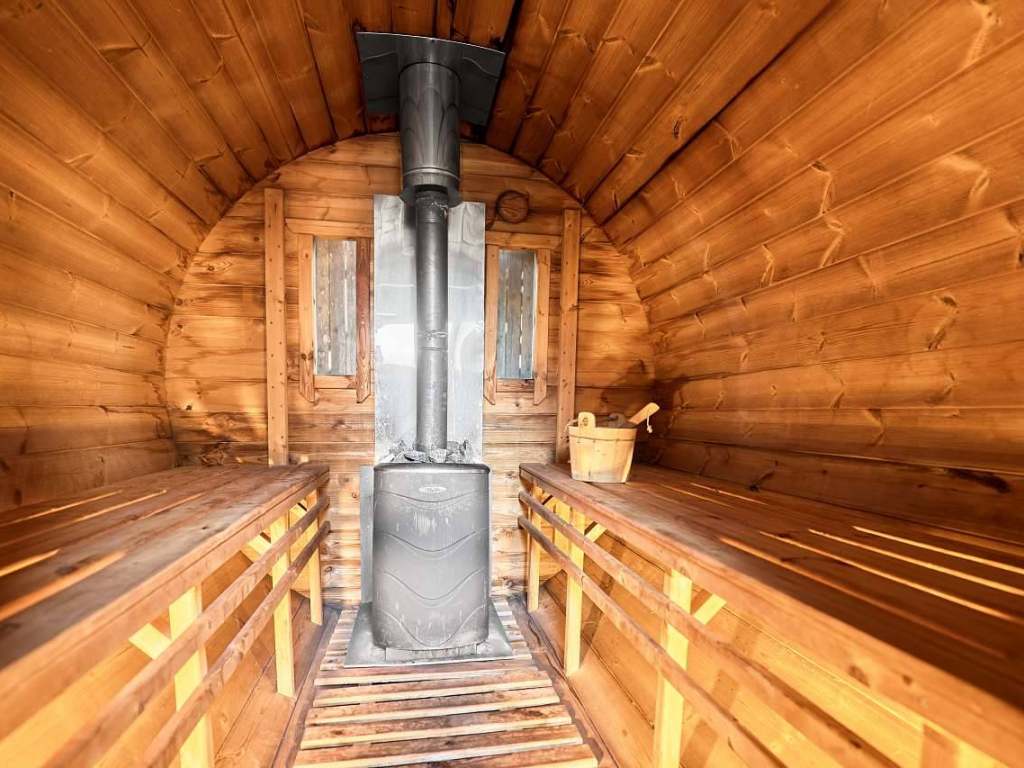 VENKOVNÍ SAUNA s kamny na dřevo, která se i v zimních podmínkách vytopí až na 100 st.