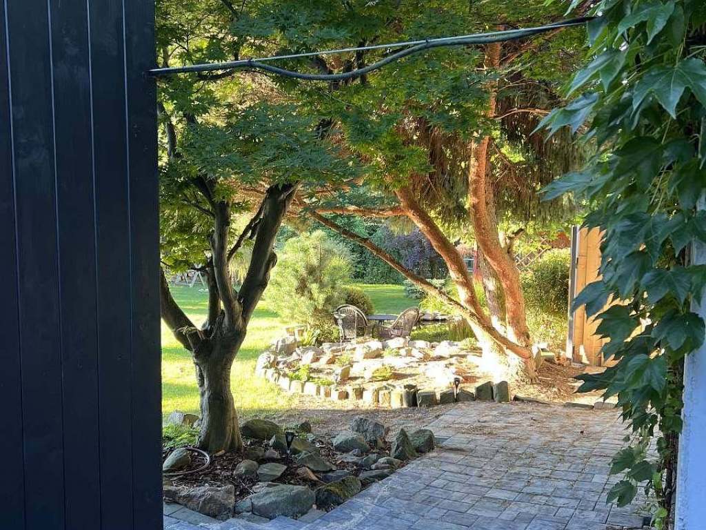 Zahrada náleží výhradně k velkému apartmánu v 1.NP, je oplocená a mohou v ní volně pobíhat menší psí plemena. Ovčí zahrada je oddělena ohradou s pletivem, což zajišťuje klidné soužití i bezpečný prostor pro domácí mazlíčky.