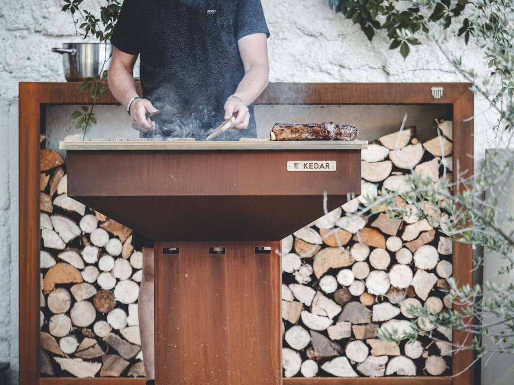 Součástí venkovního vybavení je venkovní dřevěný nábytek se slunečníky, gril, otevřené ohniště s posezením, palivové dřevo je k dispozici za poplatek.